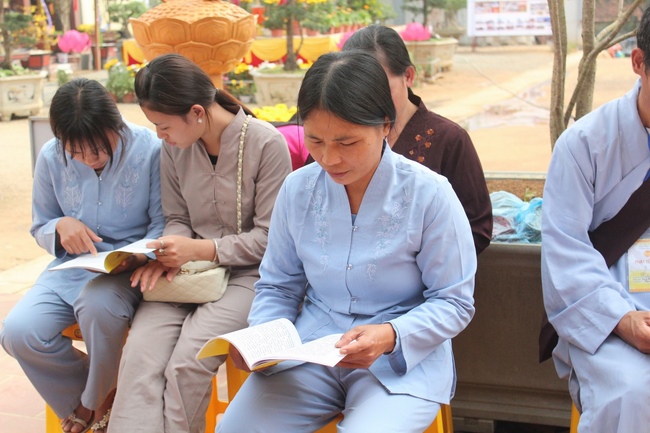 During the Dharma talk, he heartily reminded that Buddhists, when coming back to pagoda for cultivation to have to set mind at rest, and when facing to obstacles to have to identify clearly two paths: life one and death one. When recognizing the two paths, we must practice much more diligently in order to change the suffering to the Pure Land in this world, cultivate and vow insistently until the day we can set free from the reward body to be born in the Amitabha Buddha world in which there are no misery. If Buddhists practice tranquility of mind and resting, Pure-Land path will be very close and in order to have tranquility of mind we must have thankfulness and gratitude.