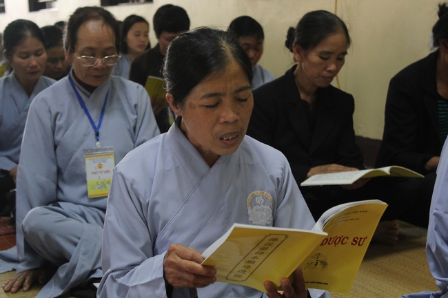 In order for the ceremony praying for peacefulness attained more merits, in that afternoon, the Pure Land sect of Hoa Phuc pagoda solemnly organized an altar for chanting the Medicine Buddha sutra to pray for national and civil safety and the world peace under the instruction of Ven. Thich Tam Hoa and the monks of Hoa Phuc pagoda.