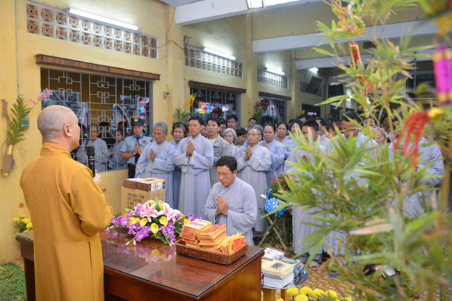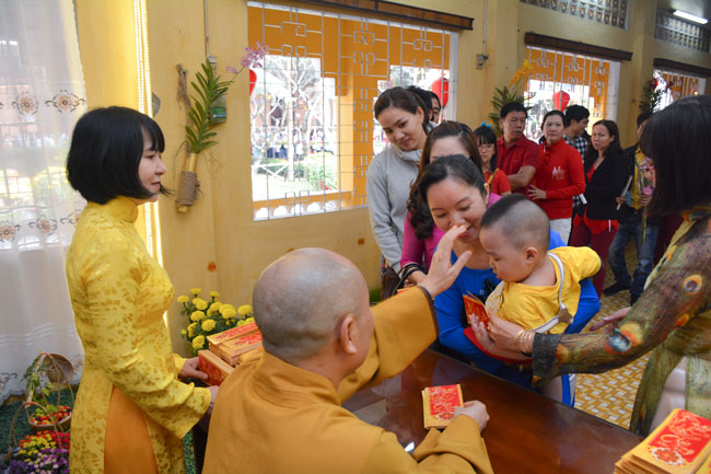 In the merry Lunar New Year and in the respect of Buddhists\r\nto the Buddha, Sen. Ven. Thich Chan Tinh and the monks of Hoang Phap pagoda\r\npresented at Forefather House from 6 a.m. to 11 p.m. to welcome Buddhists,\r\nvisitors and give lucky buds to them. In this occasion, the Abbot offered more\r\nthan 45.000 New Year bags and more than 45.000 dharma DVDs “Saving Beingsâ€\r\nwhich is about his last year dharma affairs. Besides that, the pagoda has also\r\nserved more than a half ton of cake to Buddhists and visitors who arrived at\r\nthe pagoda.