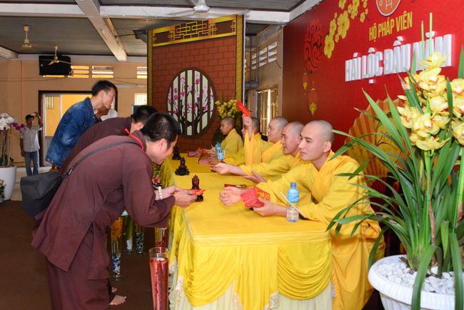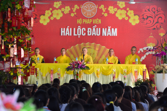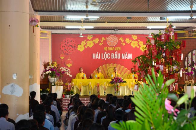 On Sunday, Feb 12, 2017 ( Jan 16, lunar calendar), members of Dharmapala group gathered at Hoang Phap pagoda for the new year meeting, listening to the Dharma talk and joining the “Hai Loc Dau Nam” event.