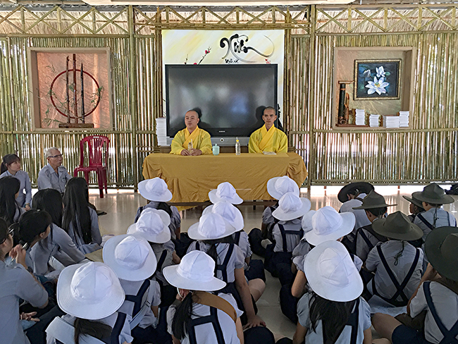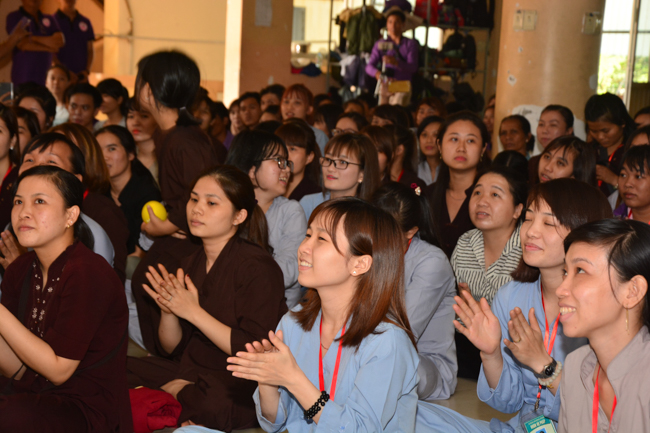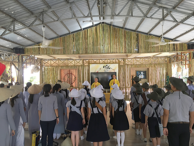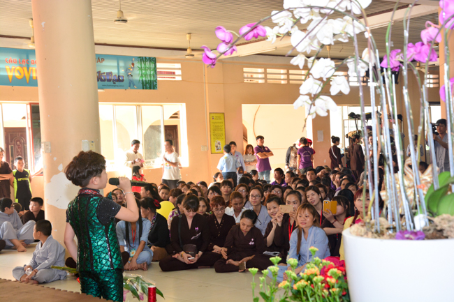 Based on the invitation of the Administrator of Dharmapala group, Deputy Abbot Thich Tam Dao and monks joined the event and delivered the motivation talk to youngsters.First, he praised the enthusiasm spirit of the group members who can settle the mission, vision and social responsibility for life at young age and come to pagoda to preserve Dharma, support the monks in Buddhism activities, refusing the attractive and exciting secular entertainments in the society. These noble acts can generate abundant merits. Besides, he advised the youth following the example of the Abbot of Hoang Phap Pagoda, who spent his whole life for Buddhism activities to turn the Dharma wheel and serve sentient beings despite his golden age. Thanks to his compassion that we, the Dharmapala group members, Buddhist or non-Buddhist, success or failure, can come to take refuge in Triratna, to practice and to live in the warm environment of the ashram. We should be grateful to the Abbot’s kindness and follow his example as the guideline for our lives so that we can have the ideals to live and to strive for in life. Additionally, the Reverend encouraged the group members trying their best to support the monks in Buddhism activities and develop the group with new members.