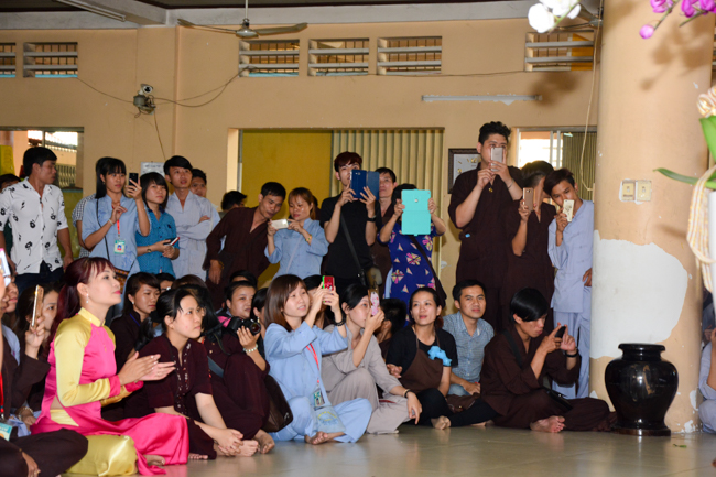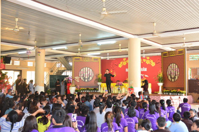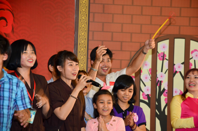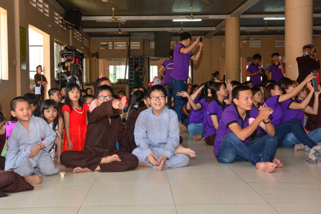 In the evening, the children in the Buddhist family group came to send new-year greetings to the Abbot and the sangha at Hoang Phap pagoda.