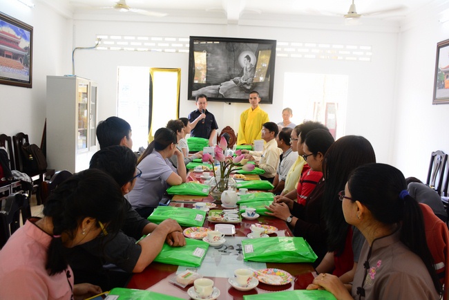 For Dhamma preaching purpose, Hoang Phap pagoda always focuses on religious activities as retreats for Buddhists and propagating Dhamma to aspirants (who would like to study Buddha teachings and search for bliss and ease in life). The sphere of those programs is not only limited in domestic region but also spread to overseas areas. From that point of view, English version of Hoang Phap website has been formed and put into operation for more than 5 years. With the witness of Venerable Thich Tam Trong, Deputy Abbot of Hoang Phap Pagoda, the meeting took place in joys with the participation of members including students and university lecturers as Mr. Le van Duoc, Mr. Hoang Huan. Ms. Le Thuy Duong, Mr. Tran Quoc Dung, Ms. Dieu Lien Hoa, Ms. Dieu Ngoc.