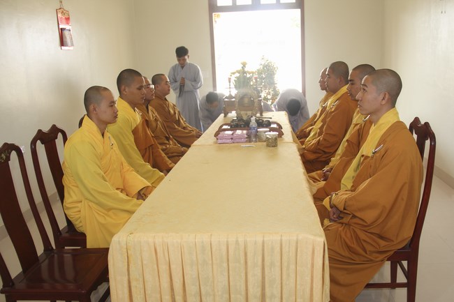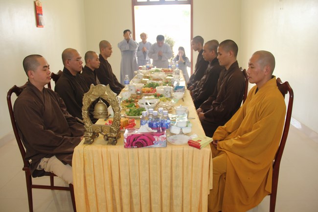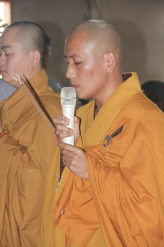 After the Dharma talk is the ceremony of offering incense, doing homage to the Buddha, praying for blessing. All persistently, sincerely recited.