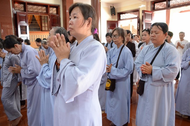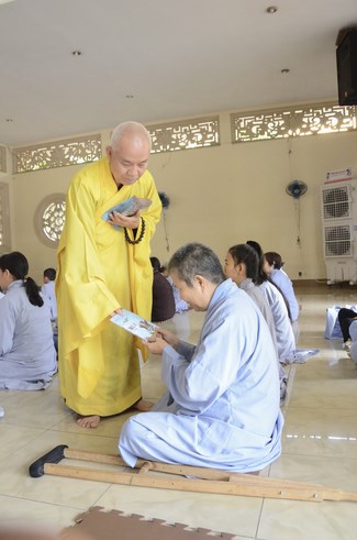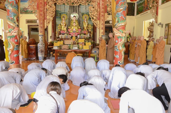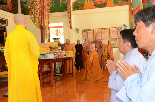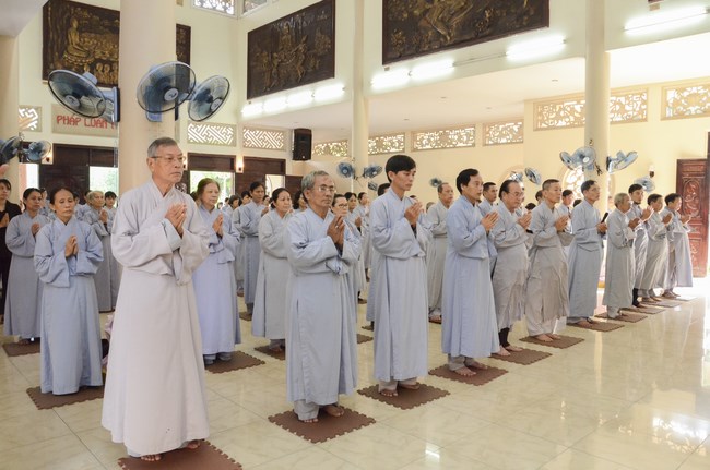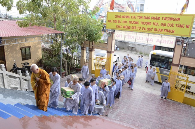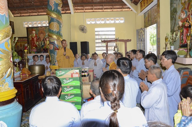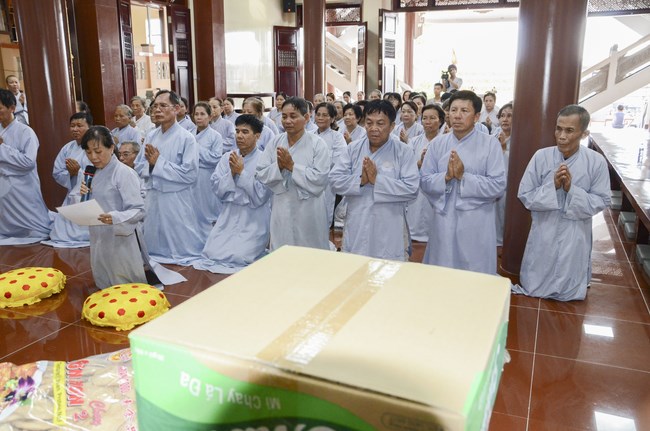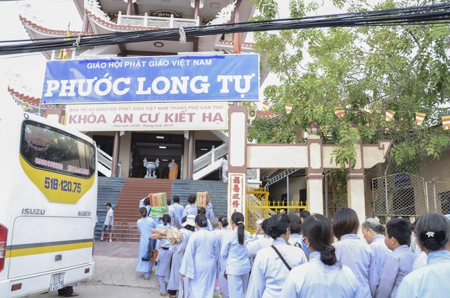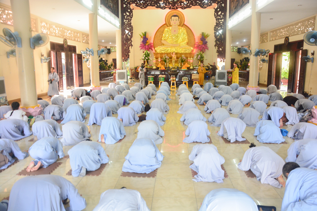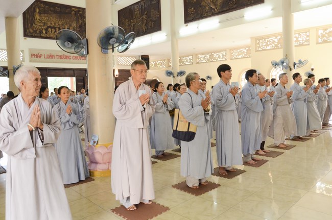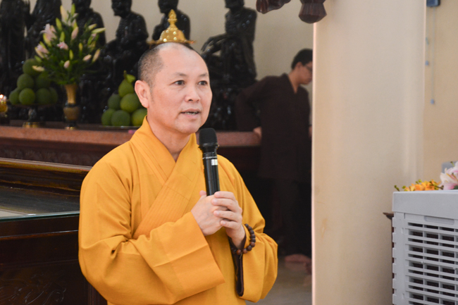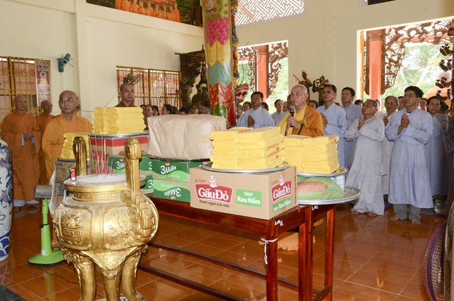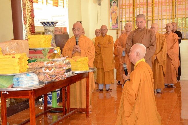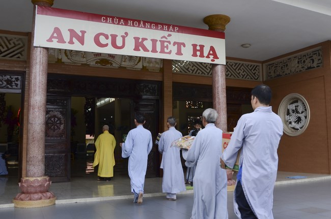 Ven. Sen. Thich Chan Tinh, abbot of Hoang Phap pagoda, praised Buddhists wholeheartedly help the monks in retreat, to cultivate, consider their inner body and mind, improve precepts, meditation, wisdom. He also reminded that Buddhists be the firm seed, protective arms for Three Refuges, act Bodhisattva ideal, Buddhistize the family and relatives, cooperatively promote Dharma to remote areas with instructions of Buddhism, the Three Refuges and good activities and evil destroy.
