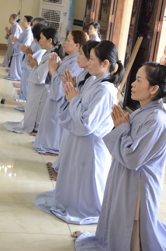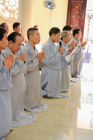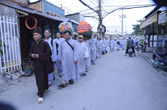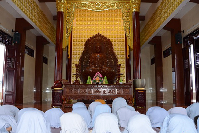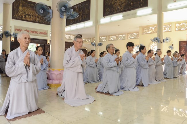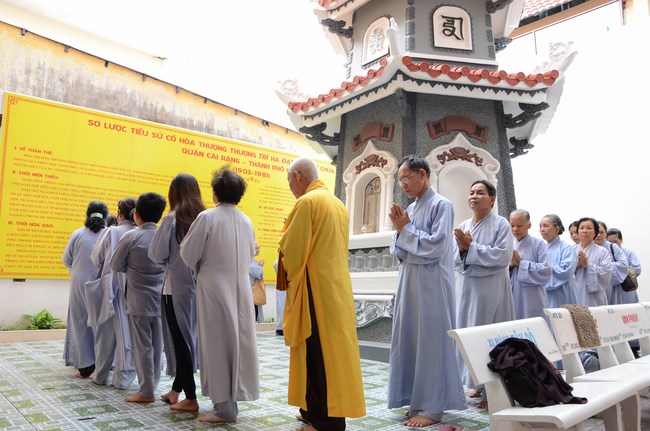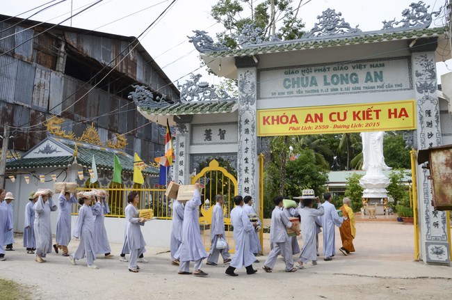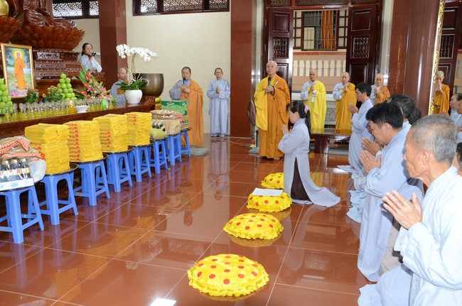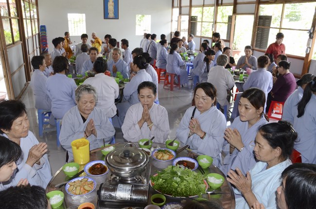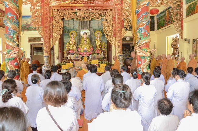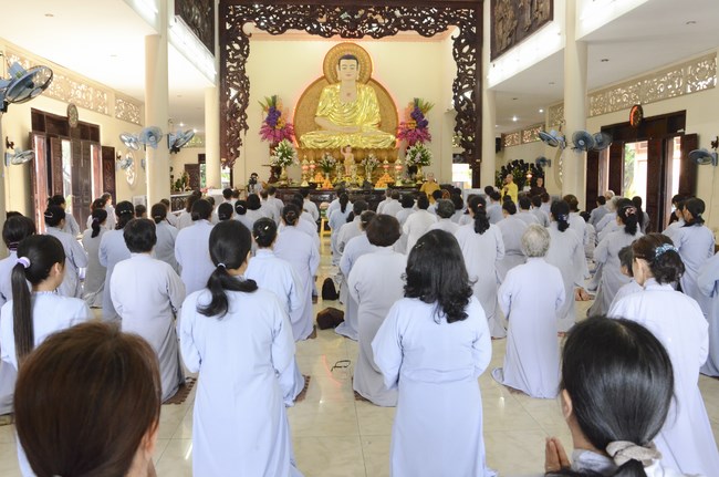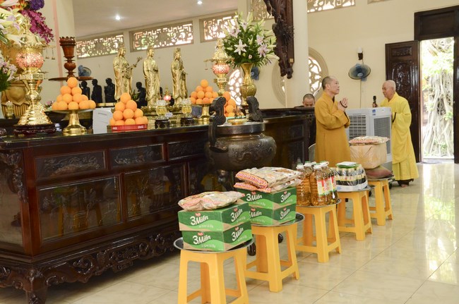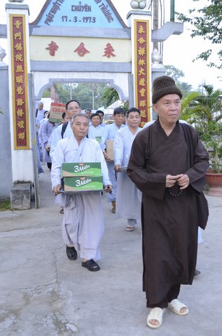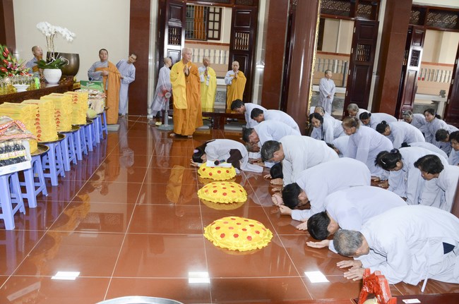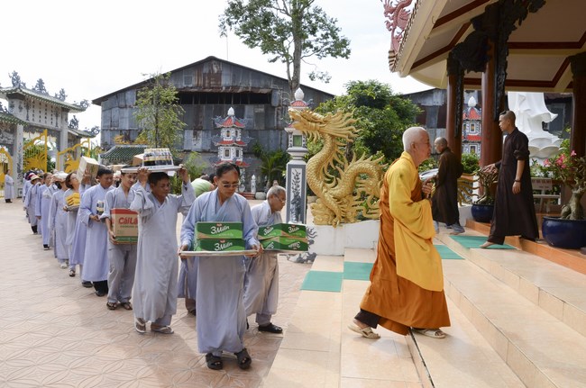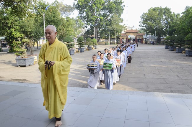 Ven. Sen. Thich Chan Tinh, abbot of Hoang Phap pagoda, praised Buddhists wholeheartedly help the monks in retreat, to cultivate, consider their inner body and mind, improve precepts, meditation, wisdom. He also reminded that Buddhists be the firm seed, protective arms for Three Refuges, act Bodhisattva ideal, Buddhistize the family and relatives, cooperatively promote Dharma to remote areas with instructions of Buddhism, the Three Refuges and good activities and evil destroy.