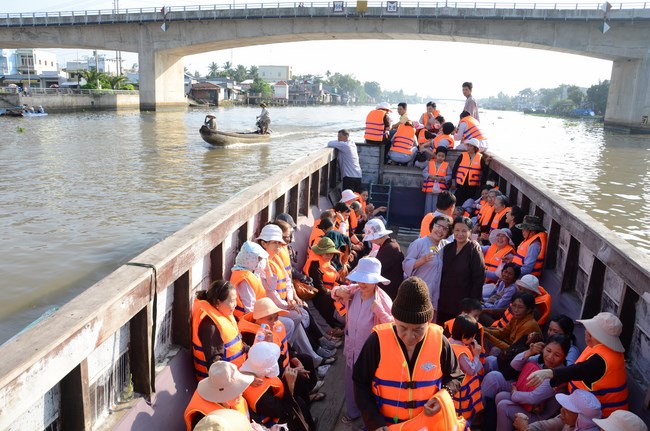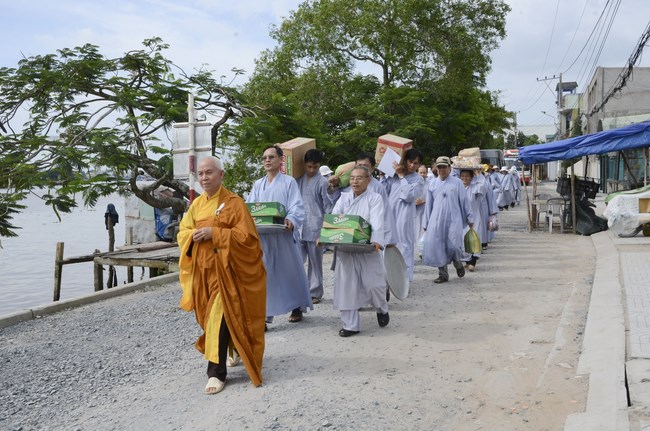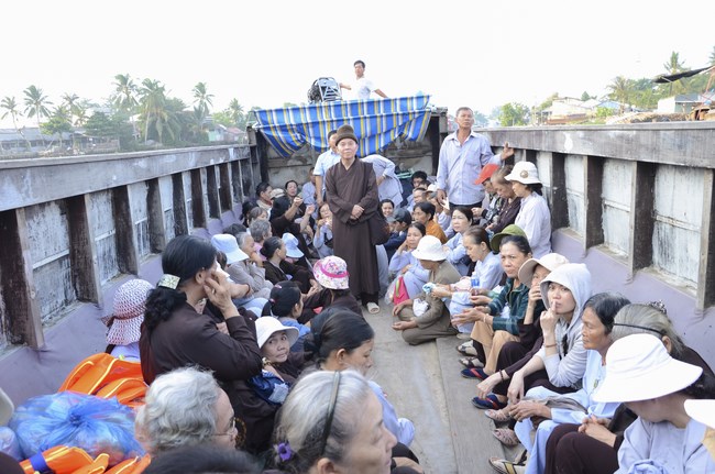 In the afternoon, they had the offering to the monks at Long An monastey and the nuns at Phuoc Long pagoda, Cai Rang District, Can Tho City.