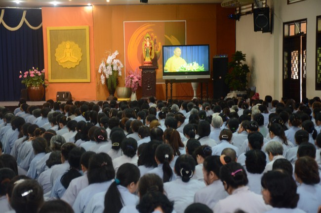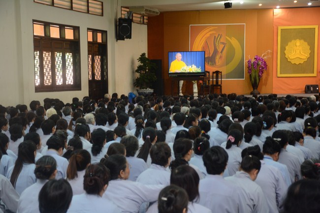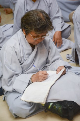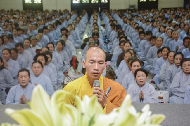 Coming and studying Dharma in pagoda is an opportunity for people to go back to the value of life, raise their awareness and prepare for enlightenment route; therefore, the Dharma talk always play a crucial role in retreats of Hoang Phap Pagoda. As usual, the retreat of the odd months, Senior Ven. Thich Chan Tinh, the abbot of Hoang Phap monastery and an organizer of one-day retreat organization, gave a Dharma preaching.