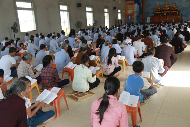At 9.A.M response to the invitation of the co - cultivator as the Junior Abbot Ven., Thich Thanh Dat, Committee of the Director Board (the D.B) of Viet Nam Buddhist Association (V.B.A) in Thanh Hoa province, the Chief of D.B of V.B.A in Hau Loc District, Abbot of Tam Giao Pagoda who preached the dharma talk named “The Meaning of the Suffering in Life†to all the mass.