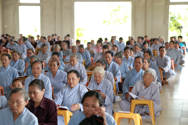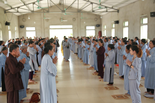 Over an hour of dharma preaching, the Junior Ven. used simple words to tell about the first condition and the based meaning of sufferings in life. Since then, he helped the mass understand more about these ones of life and encouraged Buddhists to do good deeds which helps gain good conditions on the cultivated way, transfer body and mind in the peacefulness and happiness at present and in the future. After that, the mass began the cultivated time as usual.