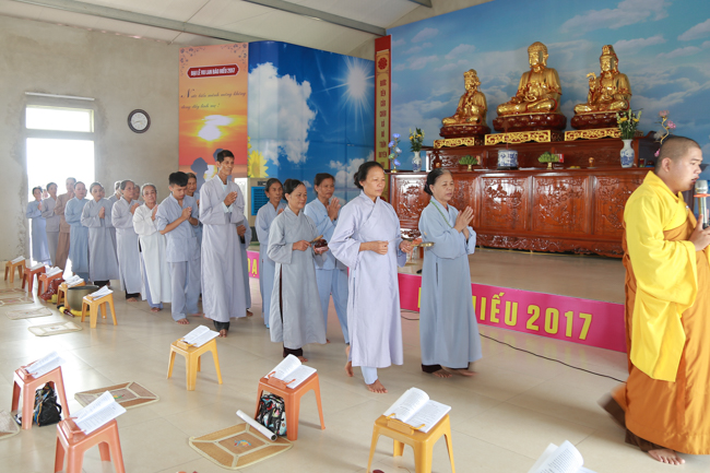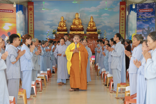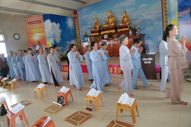 Beginning the course, Junior Ven. Thich Tam Hung, the Chief of Director Broad instructed all Buddhists the rite of great name’s repentance and reviewed five precepts of a lay man. Next, the mass practiced the rite of animal releasing.