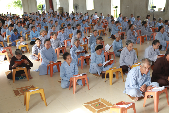 The end of cultivation, the organizers gave all Buddhists the book “Reexamining†written by Senior Ven. Thich Chan Tinh.