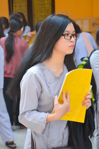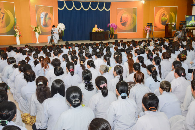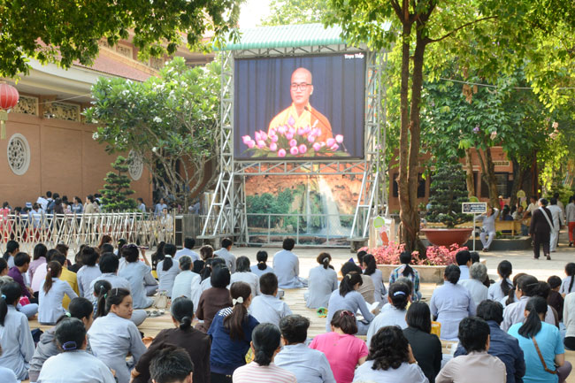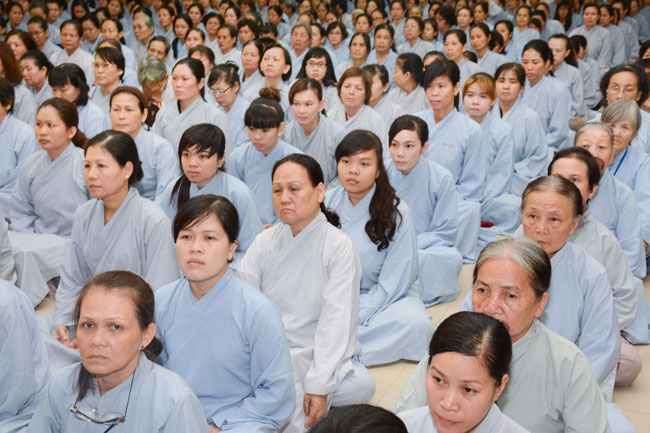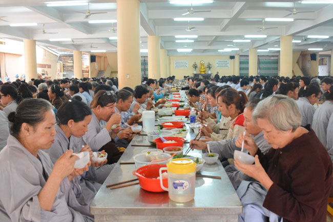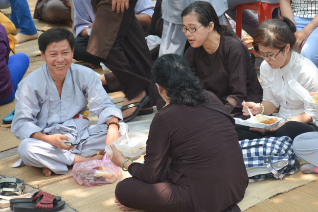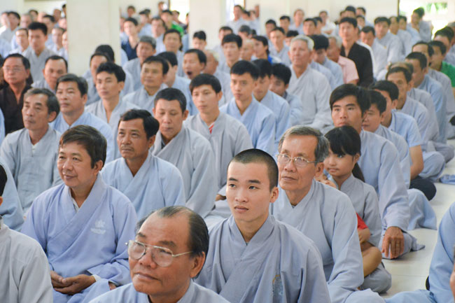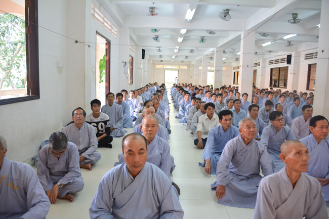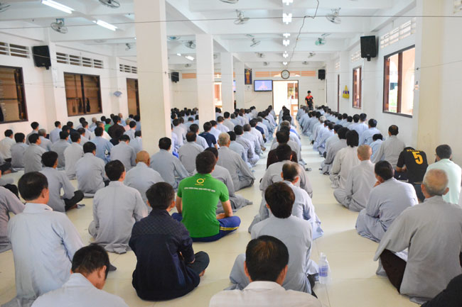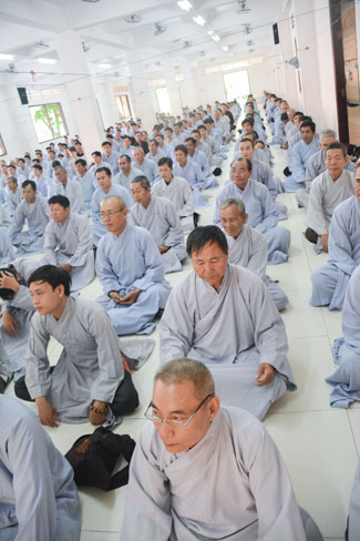 After breakfast, the Buddhists gathered in the lecture halls\r\nto listen to the Dharma talk from Junior Ven Thich Tam Tien, the monk of Hoang\r\nPhap pagoda. Over an hour, Junior Ven. shared the lecture on the topic “I have\r\nknown nowâ€.