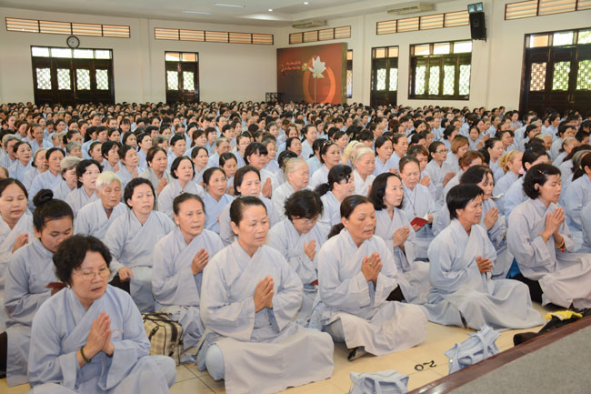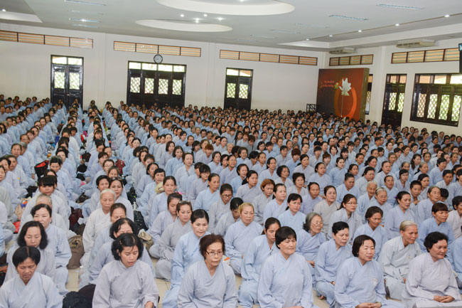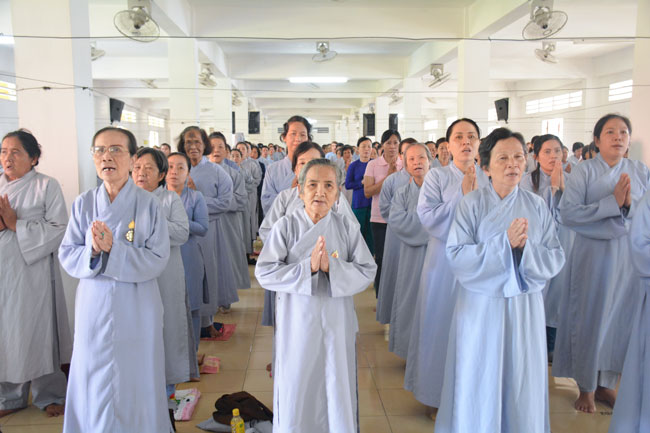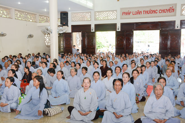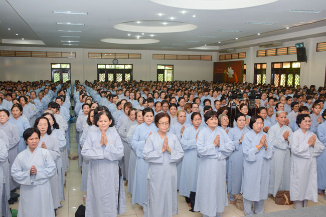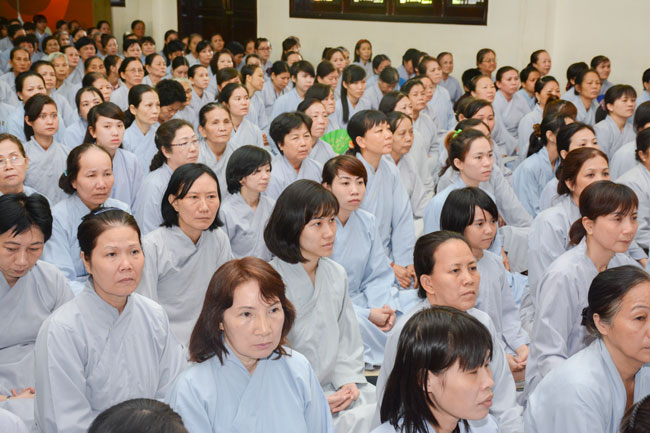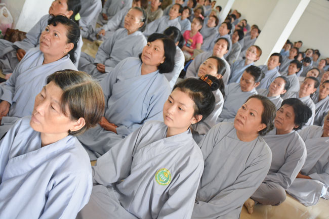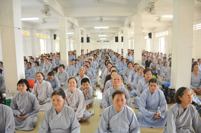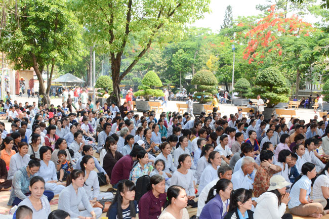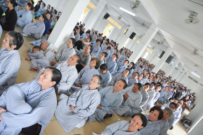 With the spirit of being eager for learning and cultivating Dharma , in the morning of April 19th, 2015 (on March 01st, Goat Year), thousands of Buddhists from neighbor provinces gathered to participate the One-day Retreat in Hoang Phap pagoda.