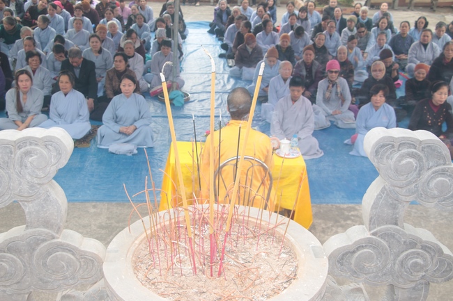 Junior Ven. Thich Tam Tinh – the Committee of the Director Board of Vietnamese Buddhist Associastion in Quang Ninh Province, Abbot of Tieu Dao Pagoda, had a dharma talk to the mass with its theme: “How are the difference cultivation between a leaving-home person and a laying man?â€