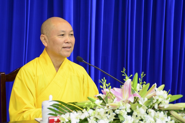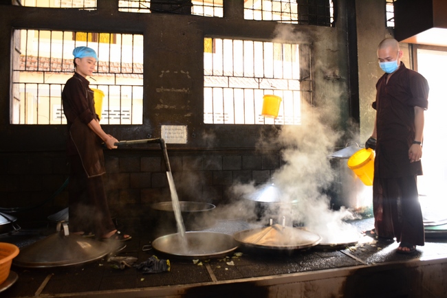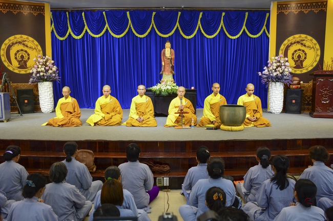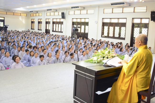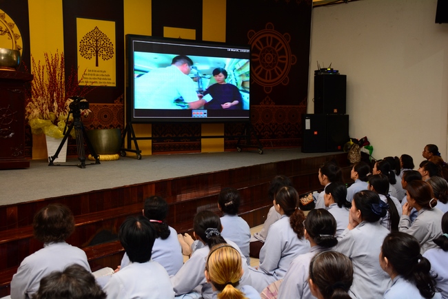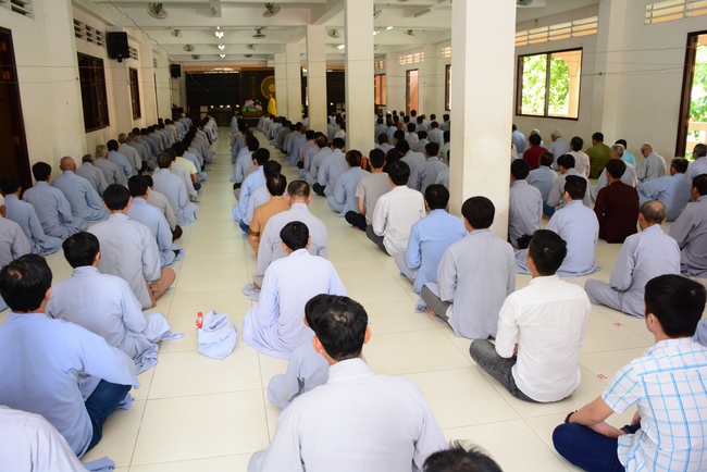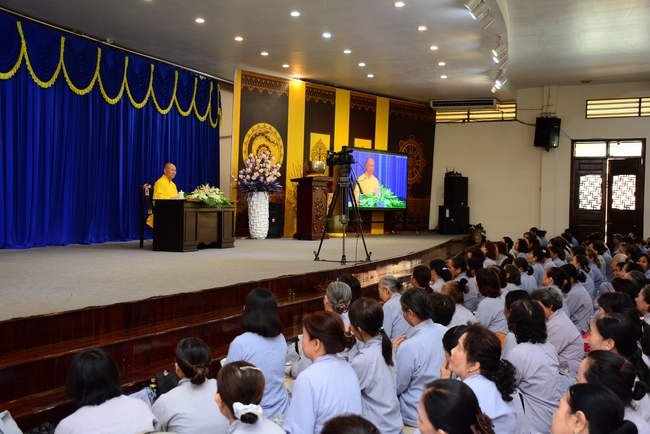 After breakfast, participants gathered at lecture halls for the Dharma Talk shared from Venerable Thich Chan Tinh, the head of the Practice organization department, Abbot of Hoang Phap temple.