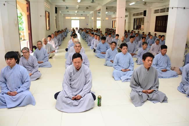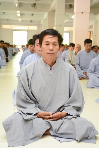 Finishing the Dharma Talk, the people start their practice course as normal.
