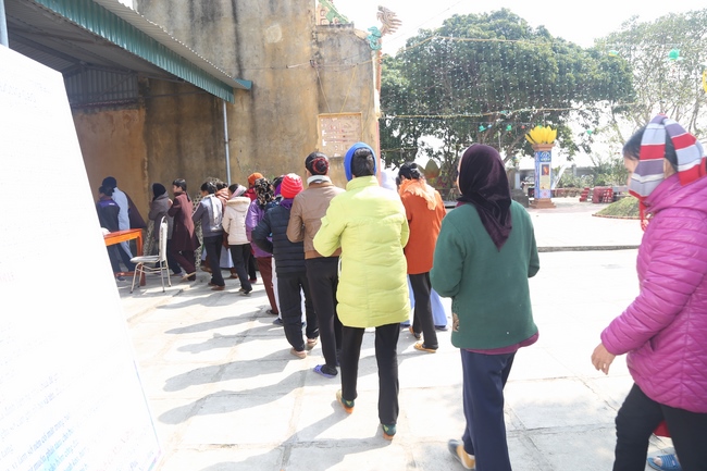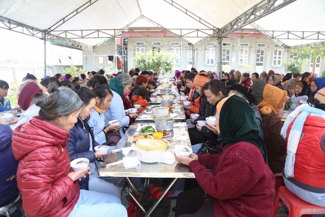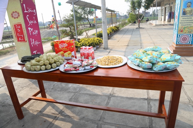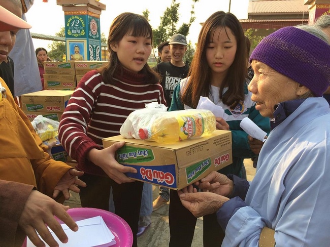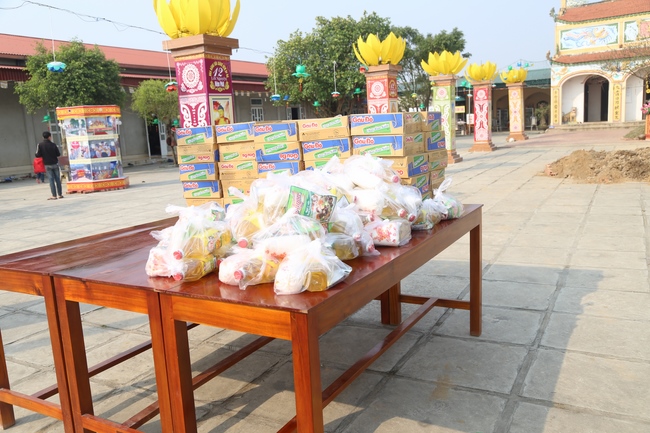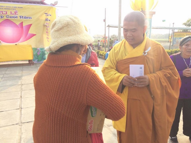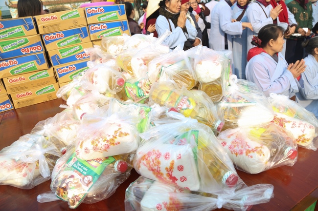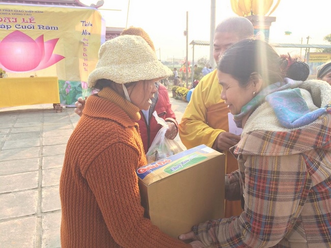 In the afternoon, the mass started the routines as usual like doing meditation, chanting, reciting the Buddha. Especially, the organizer had prepared more than 50 gift sets worth nearly 250,000 VND/ each (including sugar, cooking oil, instant noodles, seasonings, 100,000VND cash) to send to poor Buddhists.