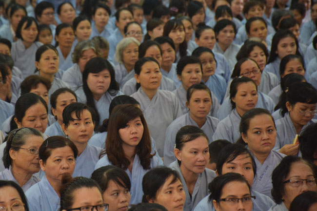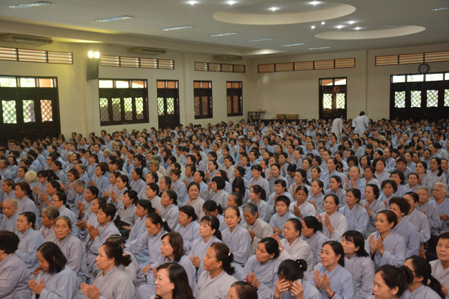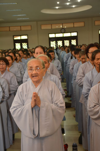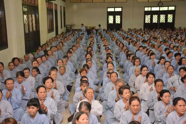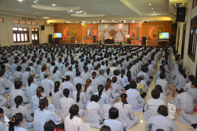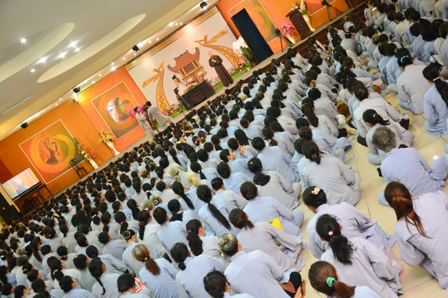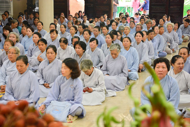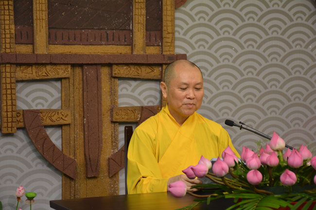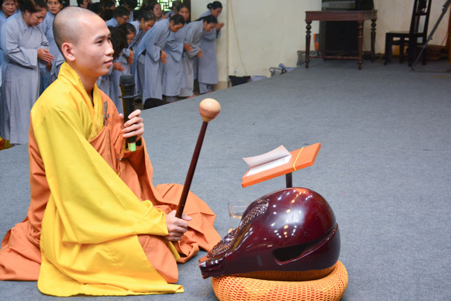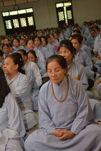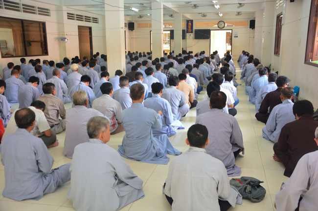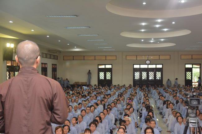 After breakfast, Buddhists concentrated on the lecture halls to listen Dharma talk by Senior Ven. Thich Chan Tinh – the abbot of Hoang Phap pagoda. Over one hour, he told stories of King Pasenadi and his 16 great dreams. Then, he explained those dreams.