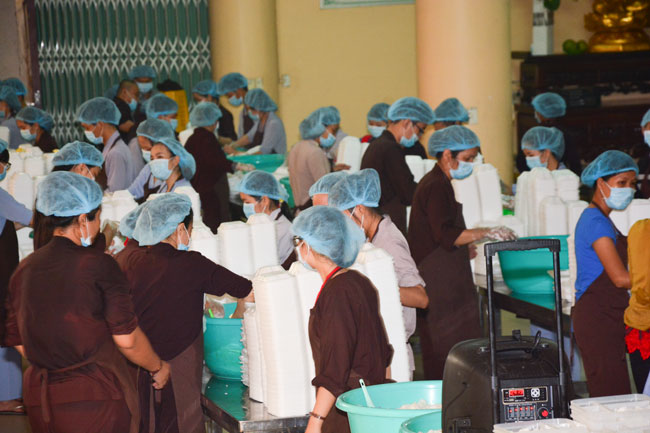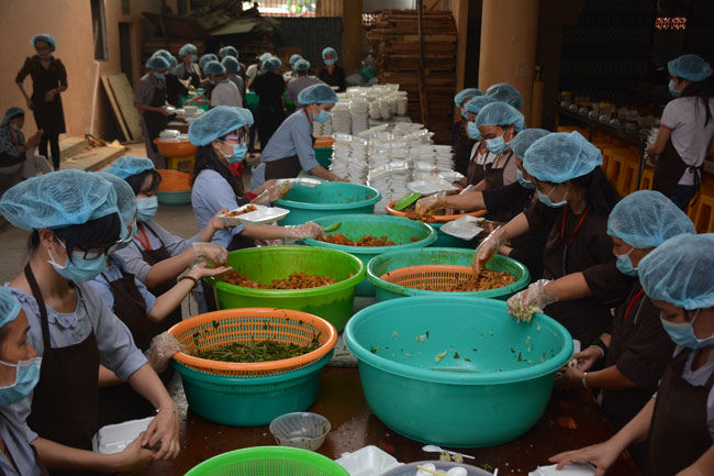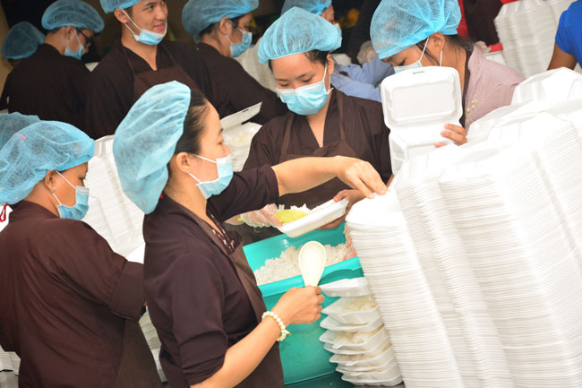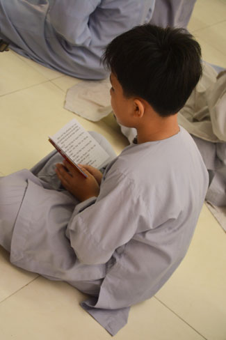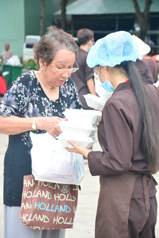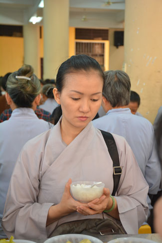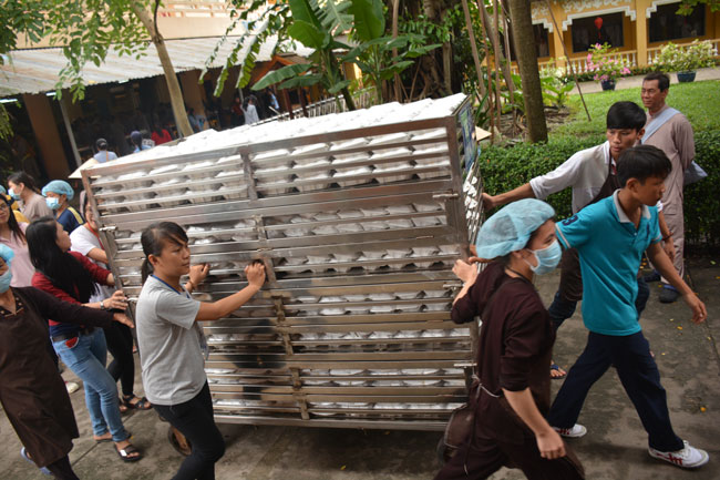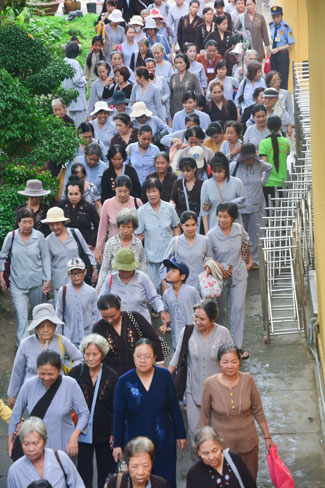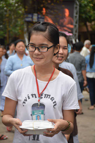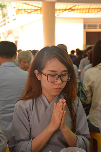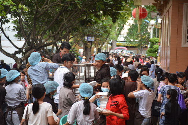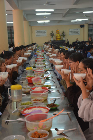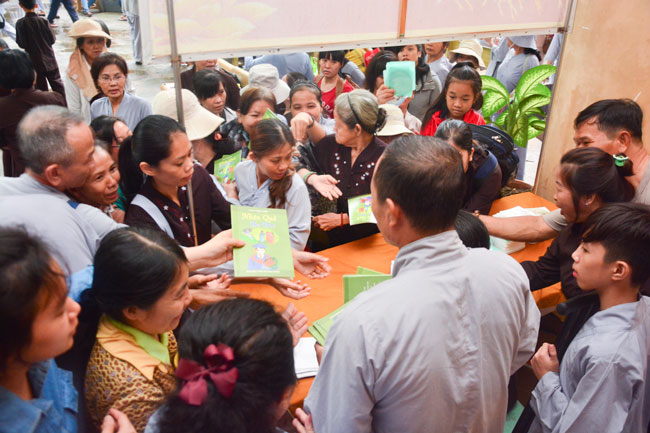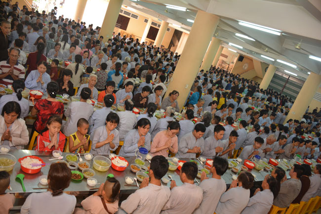 After breakfast, Buddhists concentrated on the lecture halls to listen Dharma talk by Senior Ven. Thich Chan Tinh – the abbot of Hoang Phap pagoda. Over one hour, he told stories of King Pasenadi and his 16 great dreams. Then, he explained those dreams.