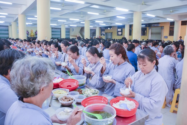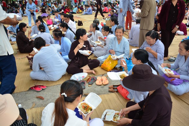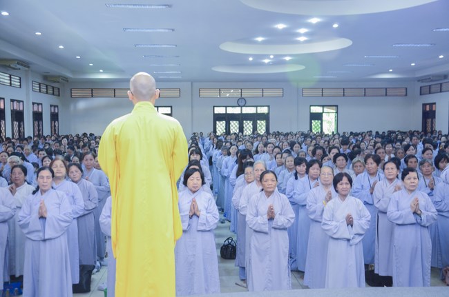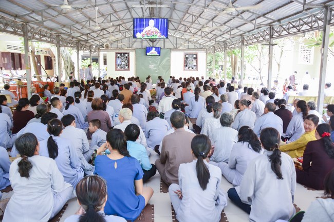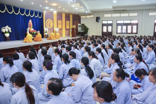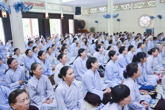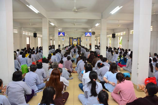 After having breakfast, all Buddhists gathered in lecture halls to listen a dharma talk from Junior Thich Tam Dao – Vice abbot of Hoang Phap pagoda – Vice chairman of the Cultivate Organization Board. More one hour of preaching, he had a speech to the mass “The Karma of Mouthâ€