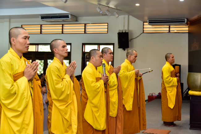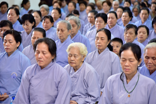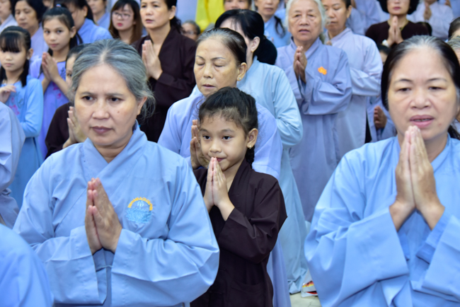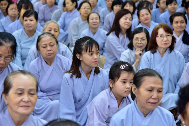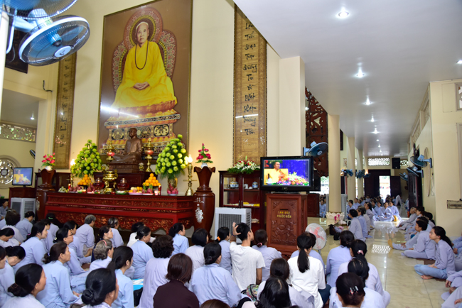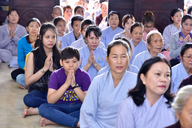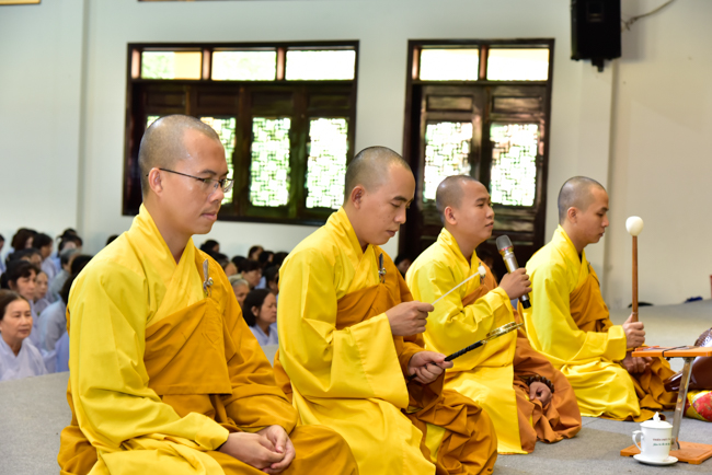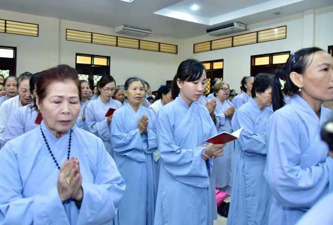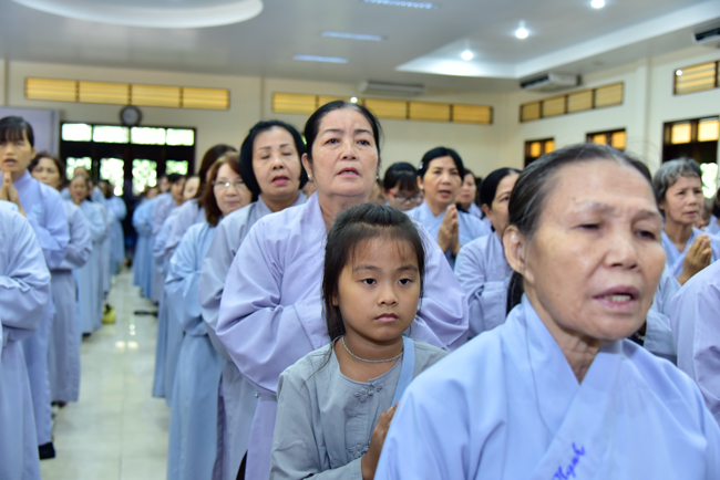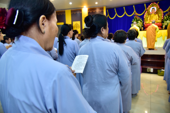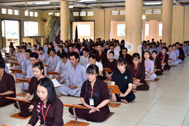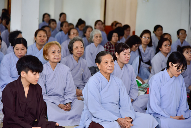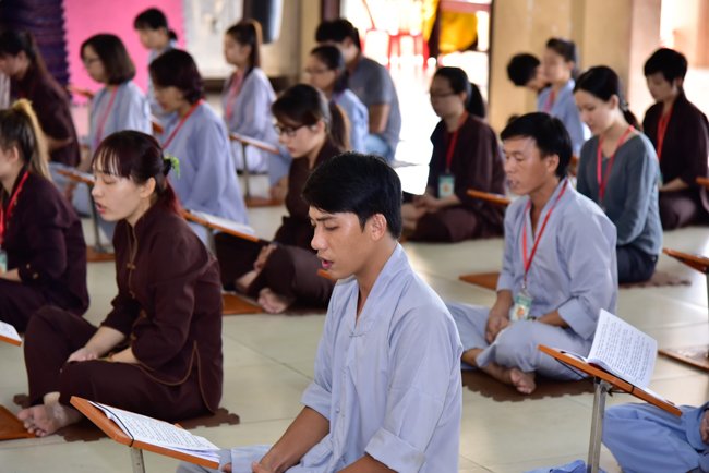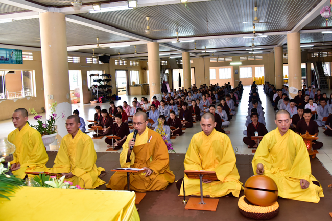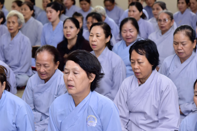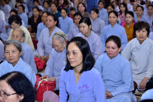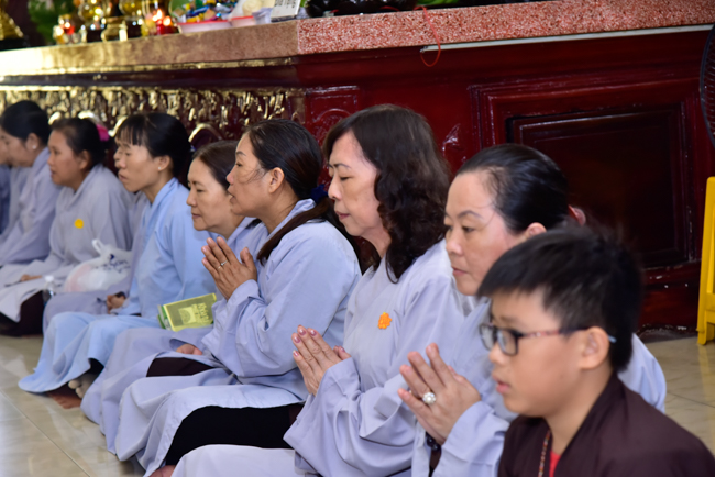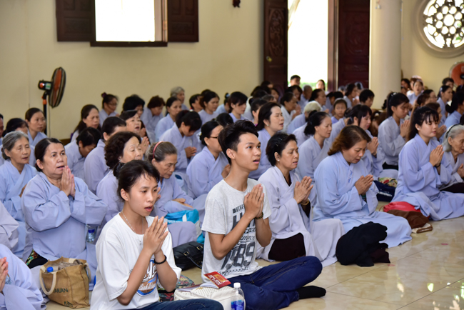 In the afternoon, after reciting time, Buddhists listened to the statement of Precepts for lay members and practiced meditation.