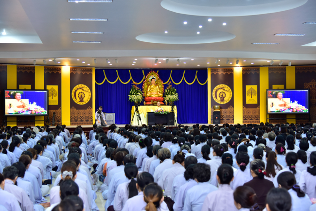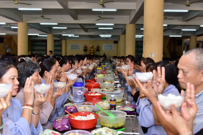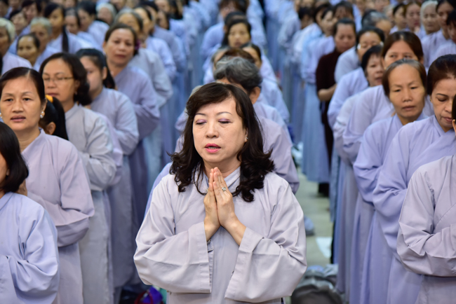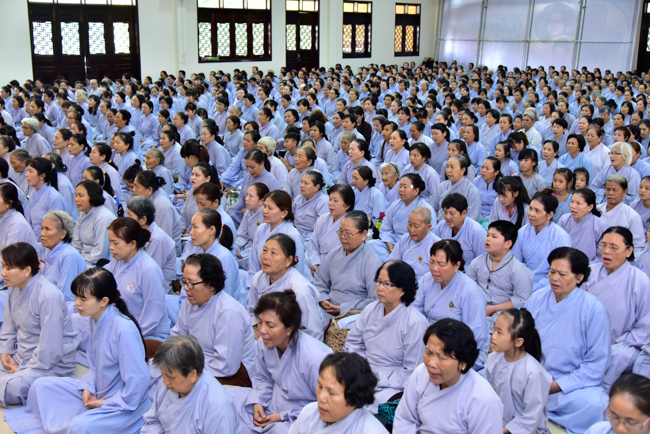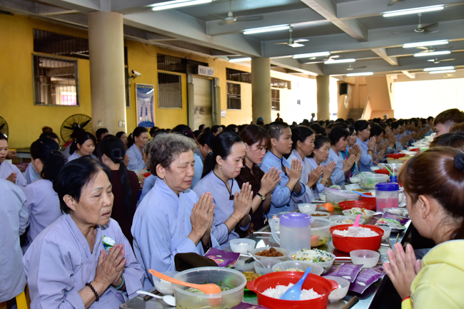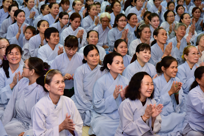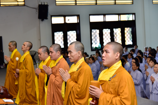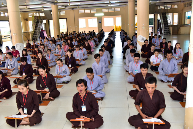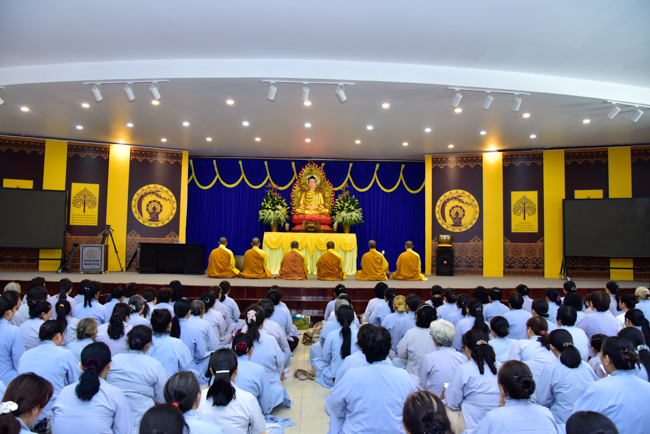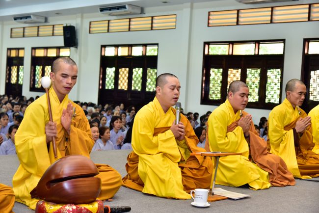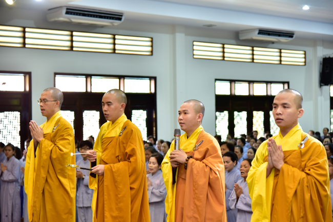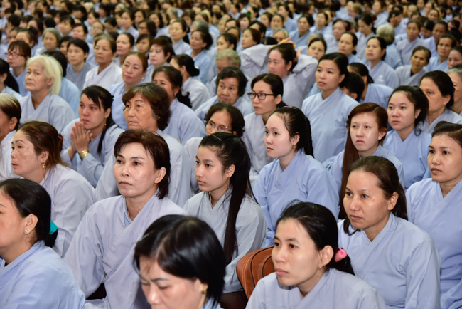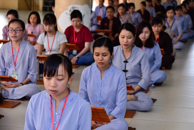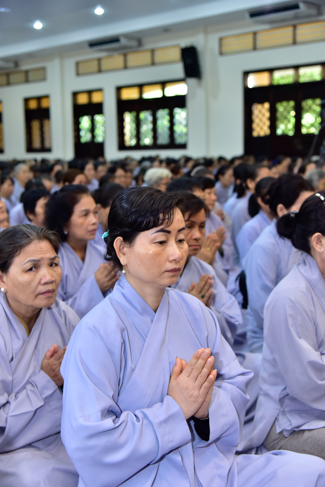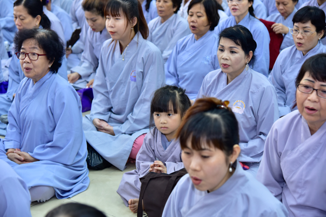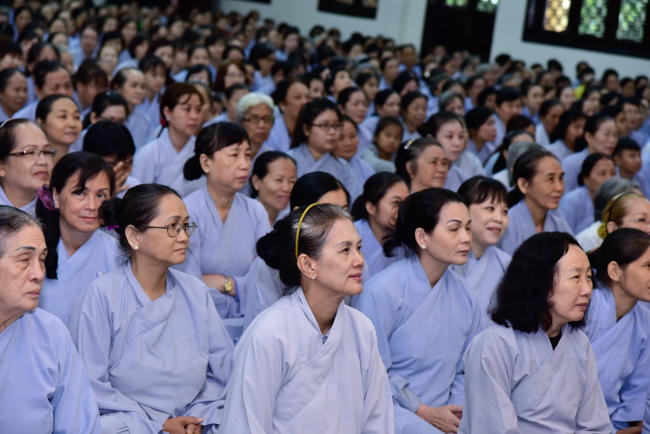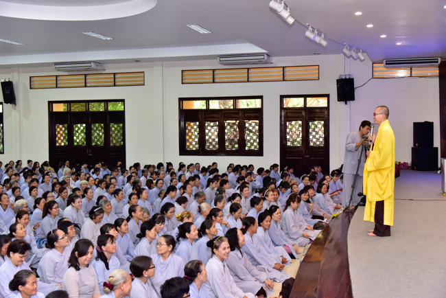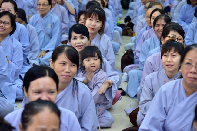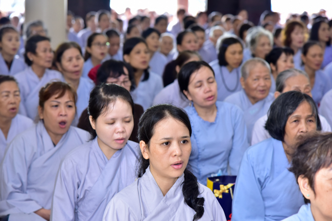 In the afternoon, after reciting time, Buddhists listened to the statement of Precepts for lay members and practiced meditation.