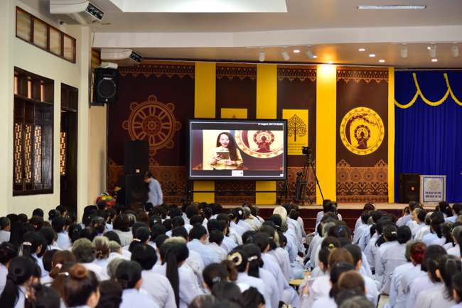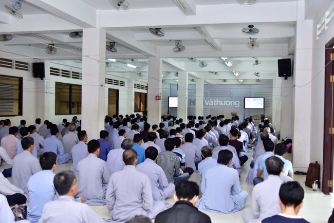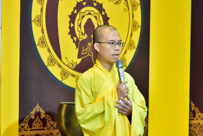 After breakfast, participants gathered at lecture halls to listen to the Dharma talk from Venerable Thich Tam Dao, Deputy Abbot of Hoang Phap Pagoda. In more than an hour, he talked about the topic "Impermanence".