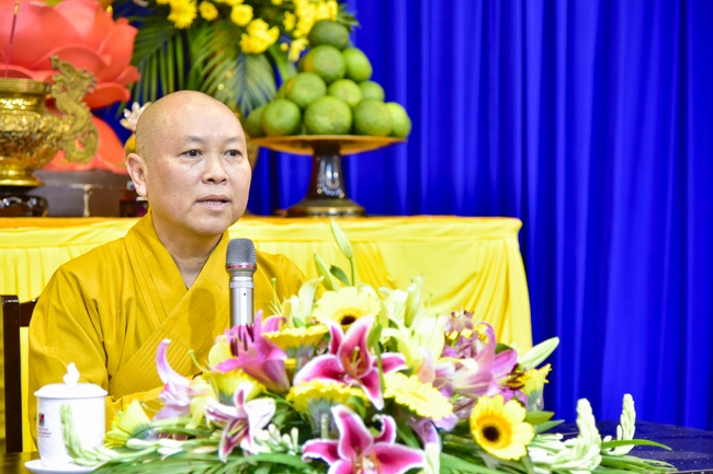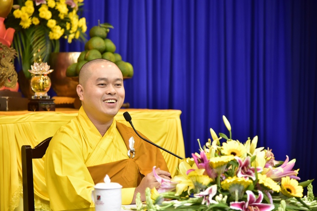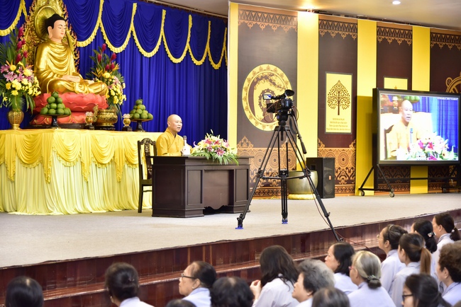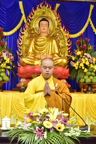 Exactly at 8am, in the dignified and solemn air, Venerable\r\nThich Tam Dao, Deputy Abbot of Hoang Phap Pagoda, delivered Dharma talk with\r\nthe subject "Overcoming Misery". According to him, there were many\r\ncauses leading to human’s sufferings. After all, they were due to desire’s\r\nconfusion, craving and ignorance. In which ignorance took the vital role\r\nleading sentient beings to unhappiness. Practitioner, once understood the cause\r\nof these reasons, would be able to apply Buddha’s teachings/methods to transform\r\nsuffering into happiness and liberation.
