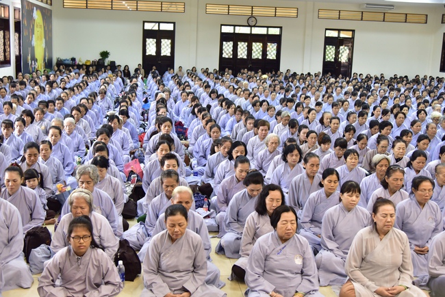 In the morning of Oct 22, 2017 (Sep 03, lunar calendar), Hoang Phap Pagoda had a one-day retreat. Regardless hard rains causing lots of challenges to transportation, thousands of devout Buddhists have come to join the course