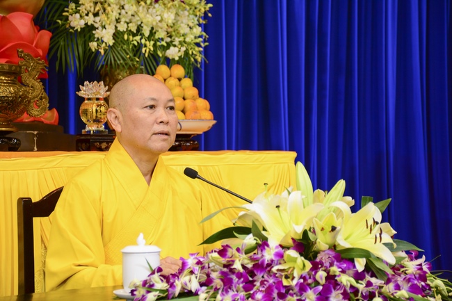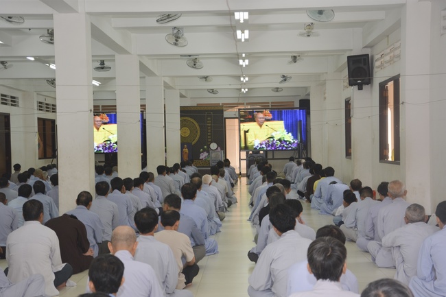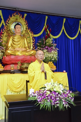 Senior Venerable Thich Chan Tinh, Abbot of Hoang Phap Pagoda, Head of Retreat organization. In which, he explained three reasons for his recent Buddhism trip in US. Firstly, it was the response to the invitation from Senior Venerable Thich Phuoc Toan, Abbot of Phuoc Hue pagoda in Tacoma City, Washington State, USA, who needed the support from Senior Venerable Thich Chan Tinh for the retreat in US. Secondly, he visited and expressed his gratefulness to the Most Venerable Thich Thang Hoan, his Abhidharma teacher several years ago. Senior Venerable Thich Chan Tinh would like to make a video clip about the Most Venerable as a bright example for young clergy generations to follow. Thirdly, he visited the plot of land that would be built as a subsidiary of Hoang Phap pagoda in Sacramento, California, US to serve the mass there.