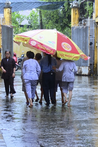 After breakfast, Buddhists gathered at conference halls for the Dharma talk from