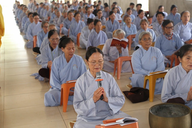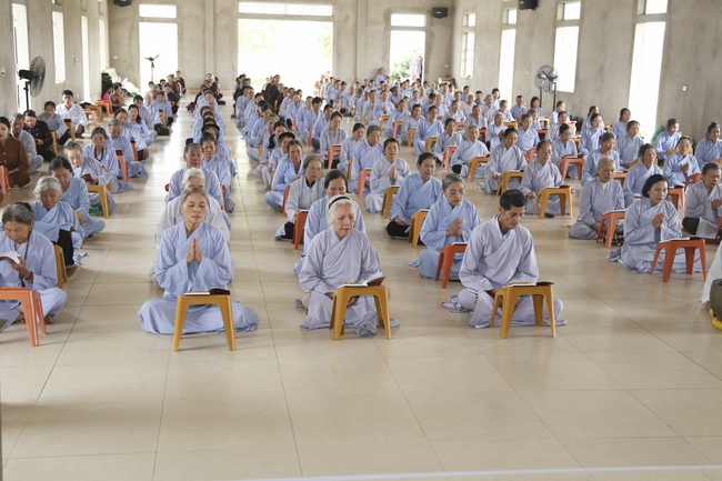 In the afternoon, after the sutra recting about “Eight Compassionate Heart and Meditative Walk†by BhadantaThich Tam Tuong, Bhadanta Thich Tam Hung talked about the thoughts about the destruction of the 12th storm to the Central of Vietnam, especially to Khanh Hoa Province. There was Vinh Phap Pagoda – a branch of Hoang Phap Pagoda in NhaTrang city, KhanhHoa Province which was nearly destructed. Therefore, the Bhadanta called out for help, to everyone, in order to give a support to the Vinh Phap Pagoda and the Buddhists nearby.