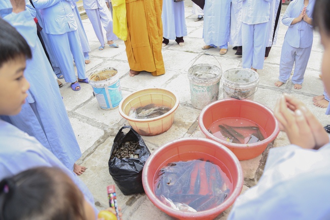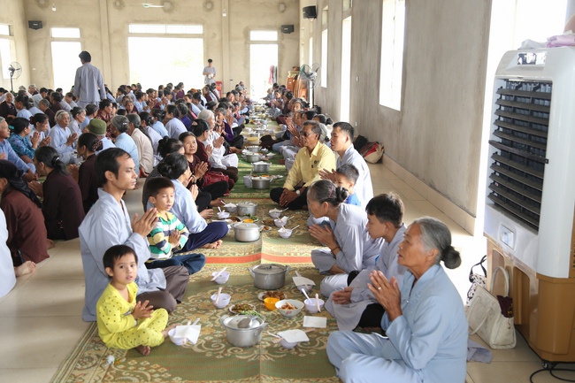 In the morning, on behalf of The Organizer, Bhadanta Thich Tam Hung instructed the Buddists the Great Name Khamà panà lesson and took a quick review at the five commandments. They also released the living creatures as the work of merit. At 9AM, Bhadanta Thich Tam Tuong – Who is the Abbot of Tay Phap Pagoda, TayNinh province, who is also in the brotherhood of The Bhadanta Thich Tam Hung, visited Dong Cao pagoda. After the arrival, The Bhadanta had a speech to everyone on the topic “Four things of happiness†After nearly 2 hours with the stories about life and the sutras from the Canon, the Bhadanta taught 4 things to make the Buddhists happy, which are: