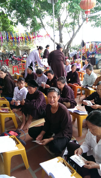 On September 27th ,2015 ( August 15th Year of Goat), local Buddhists gathered at Dong Cao Pagoda – Nga Yen village, Nga Son district, Thanh Hoa province to attend a one-day retreat of reciting Buddha.