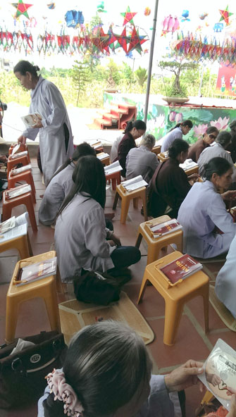 On this course, the organizers gave a VCD “Mendicity to Nourish Parents†by Venerable ThÃch Chân TÃnh to Buddhists.