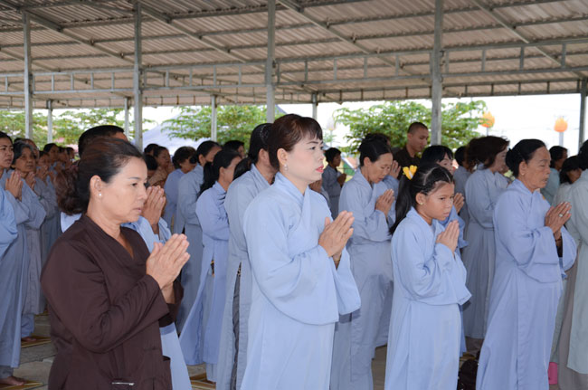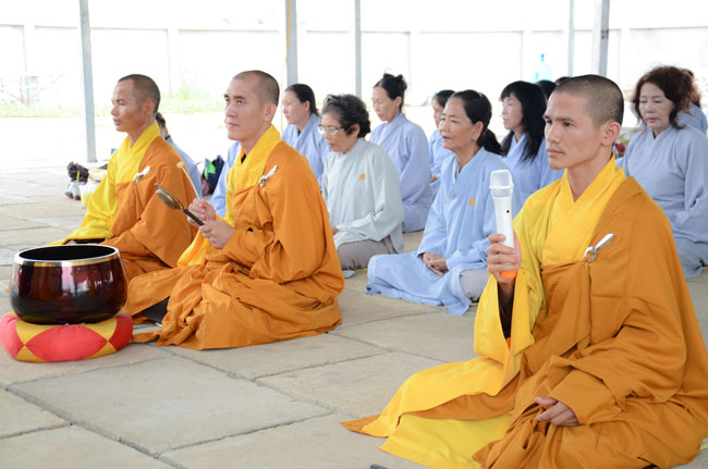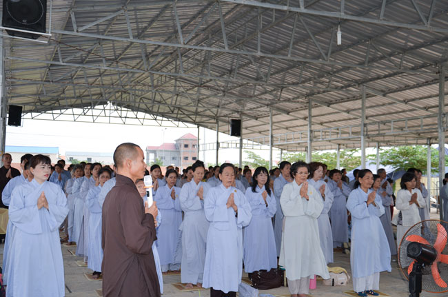 As being guided by Senior Venerable Thich Chan Tinh, on August 3rd, 2014 (July 8th, Horse year), the monks arrived at Hoang Phap pagoda in Cambodia to support activities for this One – day Retreat. During the retreat, Junior Venerable Thich Tam Huong had a talk with more than 500 Vietnamese Buddhists. The topic is “The Belief in The Three Treasuresâ€. He preached: