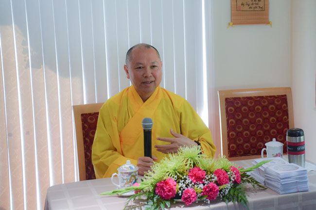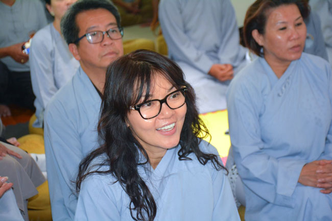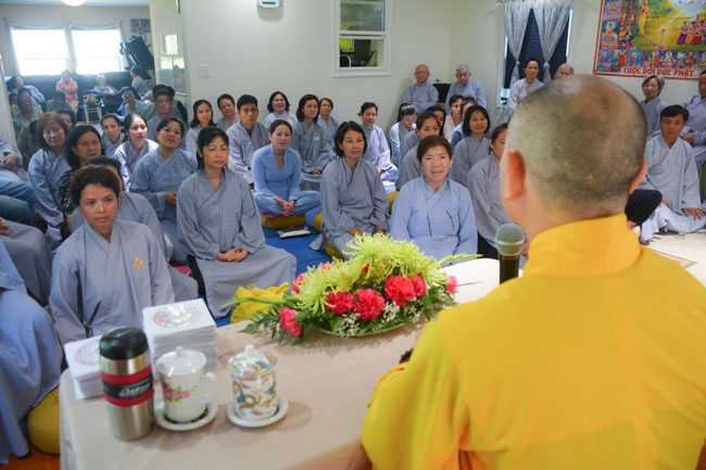 In the morning session, the Venerable Thich Chan Tinh guided the Buddhist etiquette to the mass and reviewed the Buddhism fundamentals as Triratna, Five Precepts… During the talk, he shared his practical experience in the practice and encouraged the Buddhists to develop their Dharma knowledge by reading and learning varied sutras.
