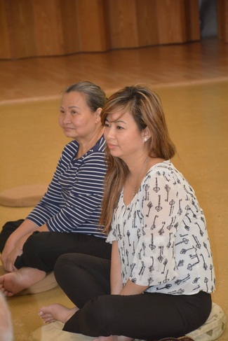 In the morning session, Venerable Thich Chan Tinh guided the mass etiquette for Buddhists, shared his experience on how to sit and recite Amita Buddha’s name.