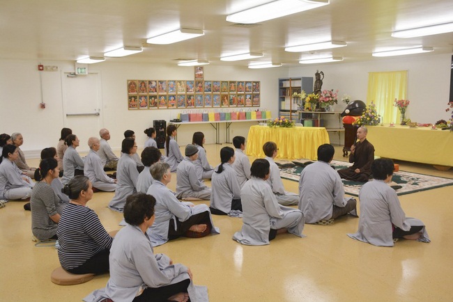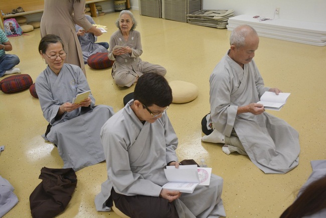 The Venerable also had a Dharma talk of the faith and how to consolidate and promote mindfulness. Thereby, the Venerable reiterated the Avatamsaka Sutra teachings: "Trust is the mother of merits". In view of Buddhism, faith is an important and integral factor bringing many benefits to Buddhism learners. Nevertheless, Buddhist belief is based on rational foundation of the practicing Buddha's teaching instead of blind confidence or dogmatic view. Thus, in the Maha-Parinibbana-sutta, Buddha said: "Faith makes people listen to Dharma, Dharma listening brings people faith." Therefore, the Venerable encouraged Buddhists diligently strive to consolidate faith to be closer and closer to eternal liberation. After the Dharma talk, Buddhists recited Amita Buddha’s name and practice meditation.