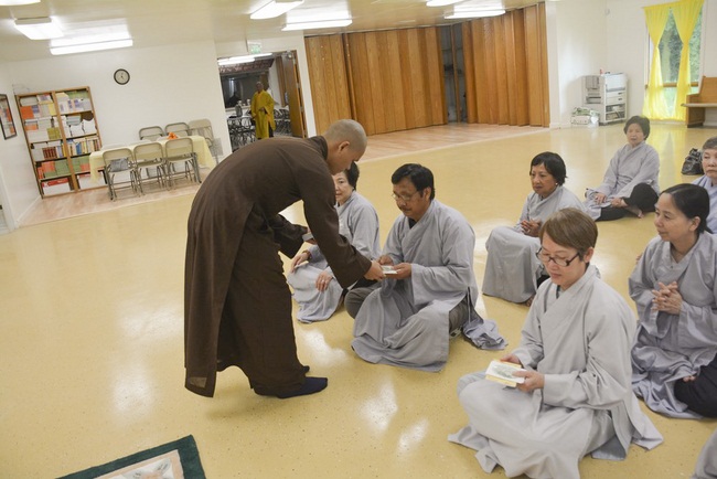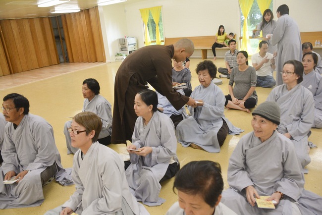 On this occasion, the Venerable Thich Chan Tinh presented DVD film "Looking for the Enlightenment" and the book "Remaining in happiness" as Dharma gift to the participants.