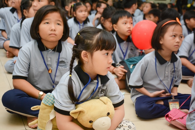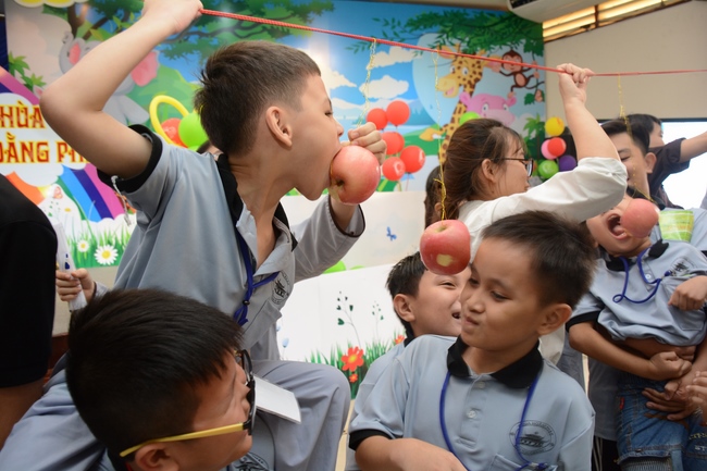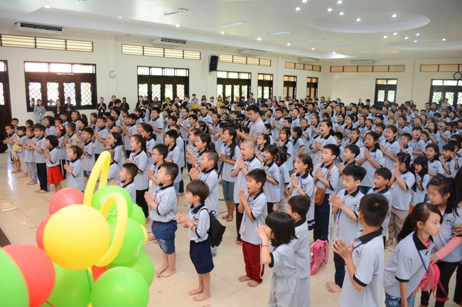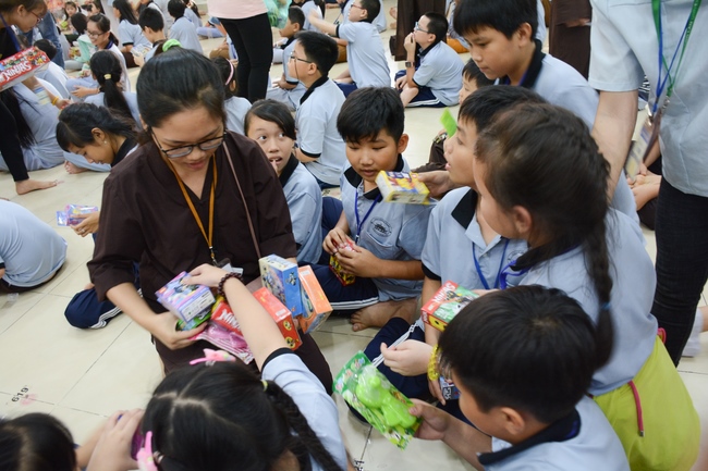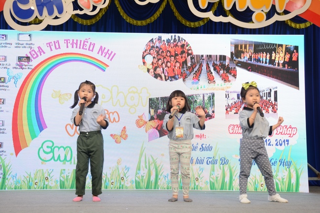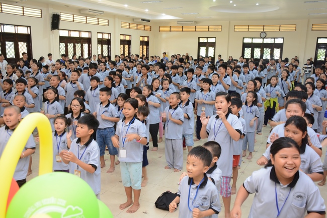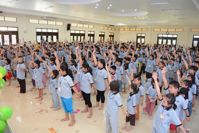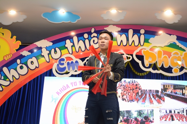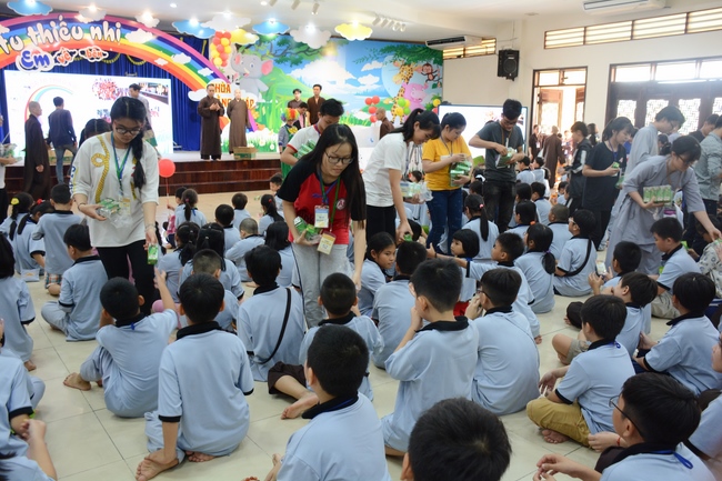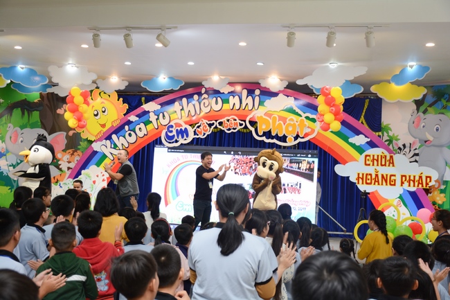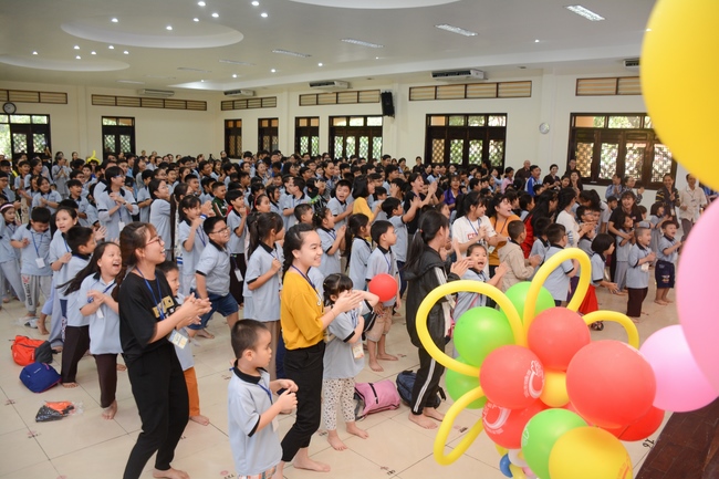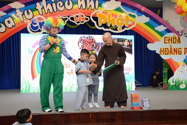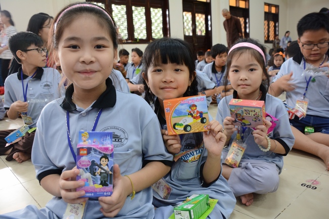 The program is held once a month on Sunday for children from 6 to 12 years old. This time, there are totally more than 300 young participants joining the retreat. It is the chance for them going to pagoda to study, access with the Dharma, and learn from monks. Besides studying Buddhism Dharma and etiquette, children have got many funny activities as team building, games, singing, story-telling. This is such a joyful, helpful and friendly playground for children to grow.