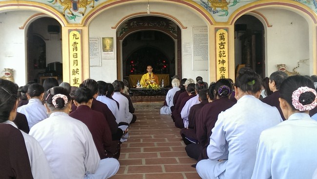 Opening for One-day Reteat of Buddha Recitation , Junior Ven. Thich Tam Trong preached a lecture about: “Pure Karma with three sources of blessingsâ€. These are three pure blessings, which are able to bring happiness for this life at present. They will be reborn in the Pure Land. That is the leading sect and ways to practice at Hoang Phap Pagoda.