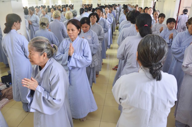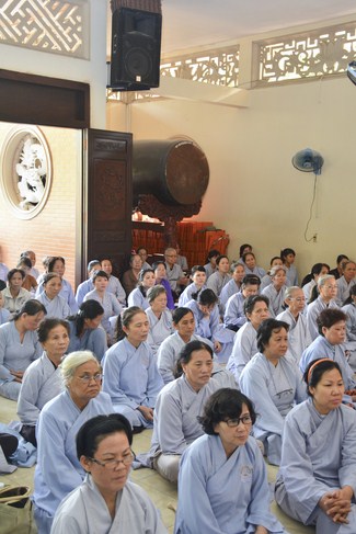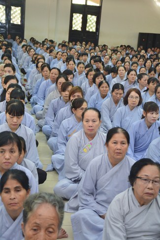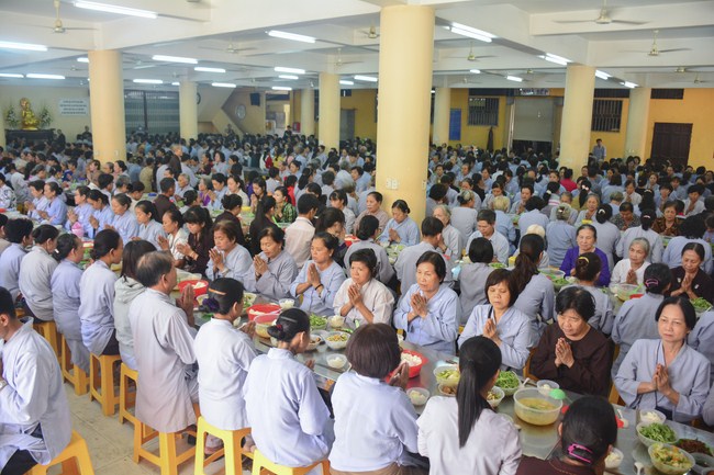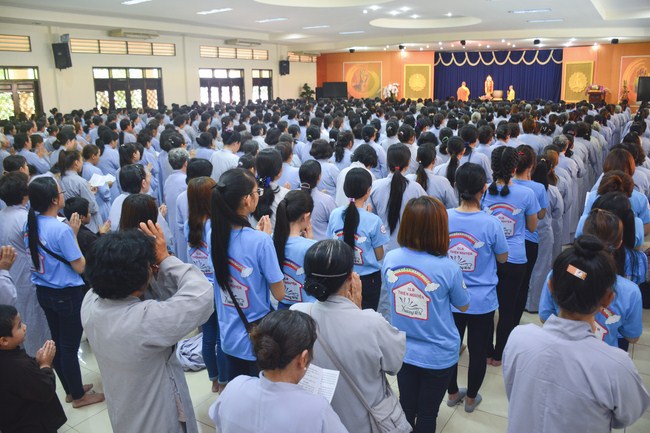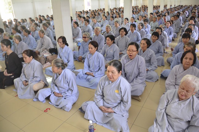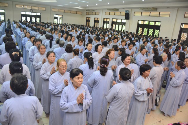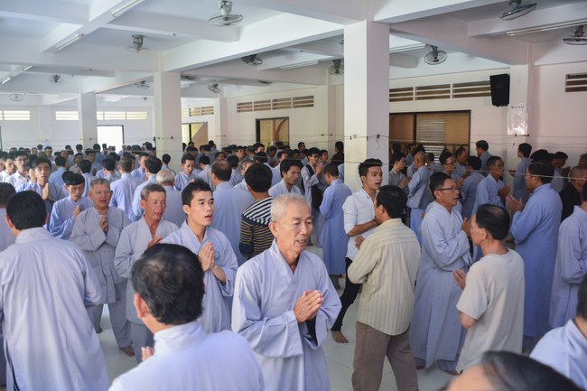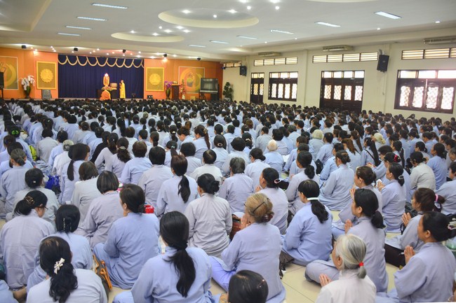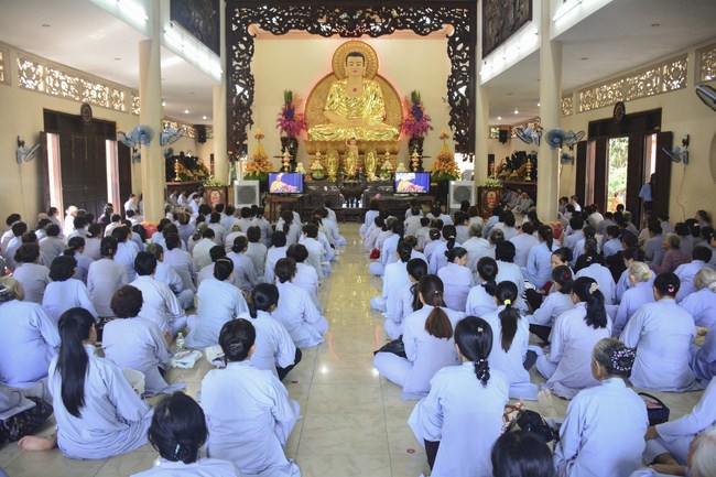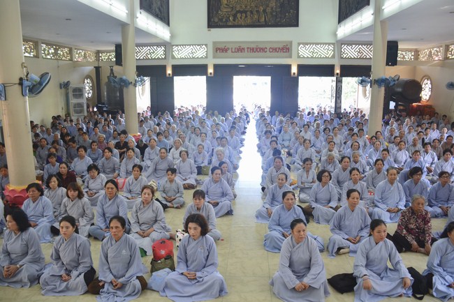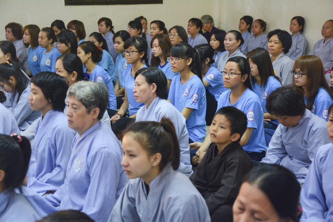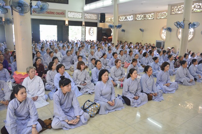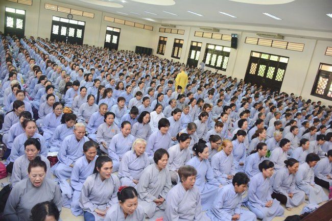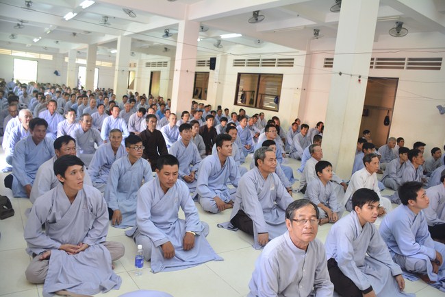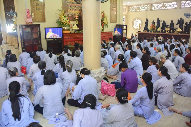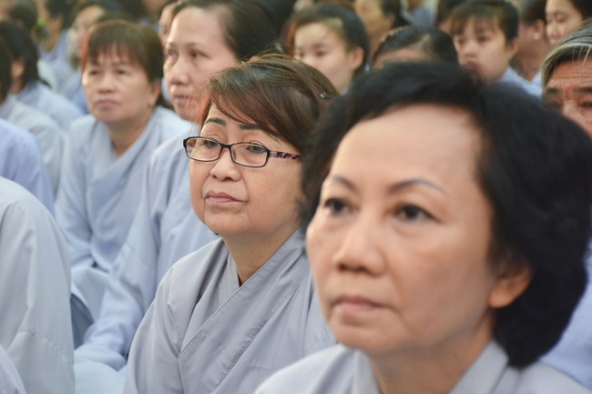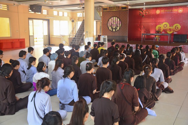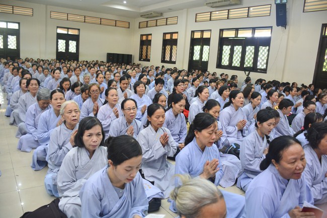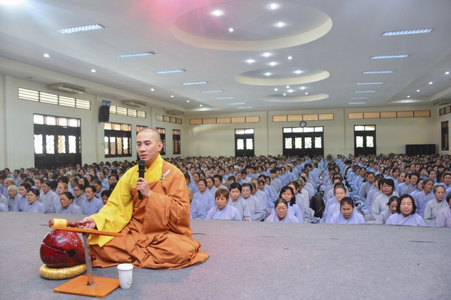After having breakfast, Buddhists gathered to the lecture halls to listen to a dharma talk from Senior Venerable Thich Chan Tinh – abbot of Hoang Phap pagoda, head of organization board.