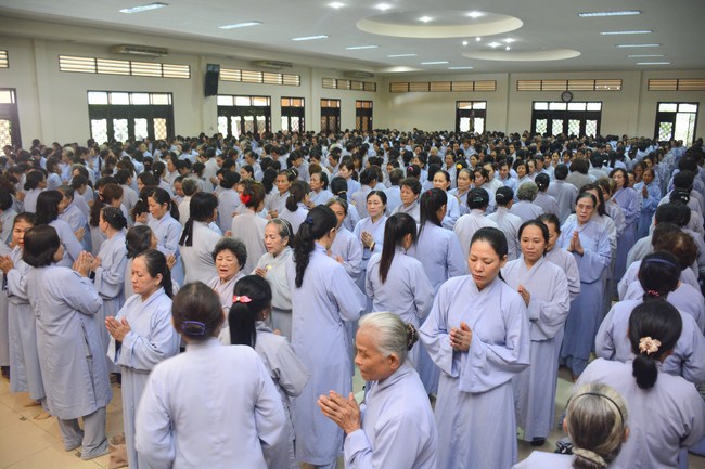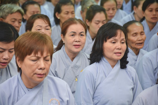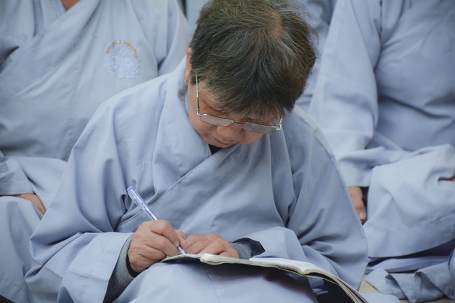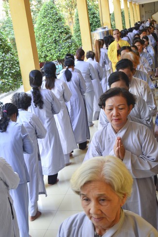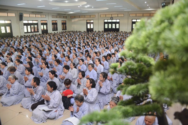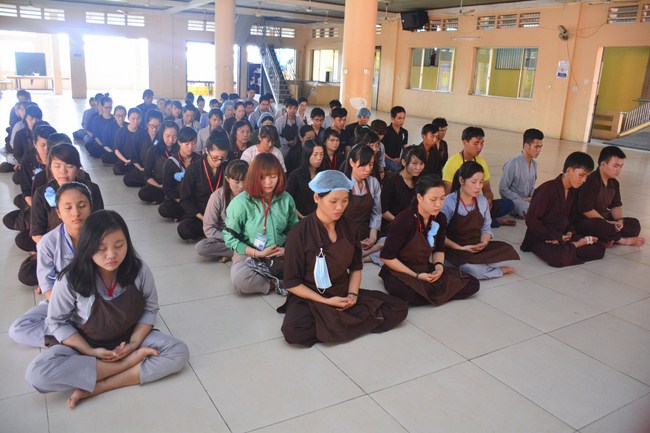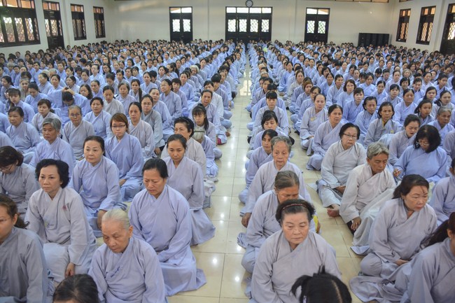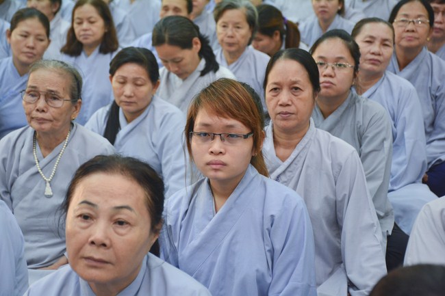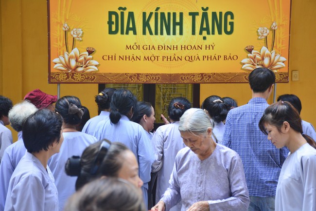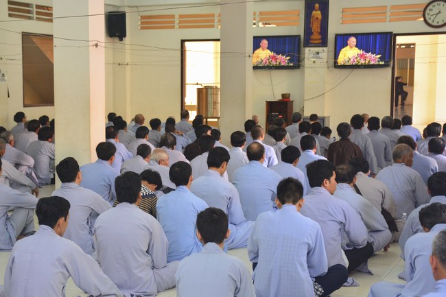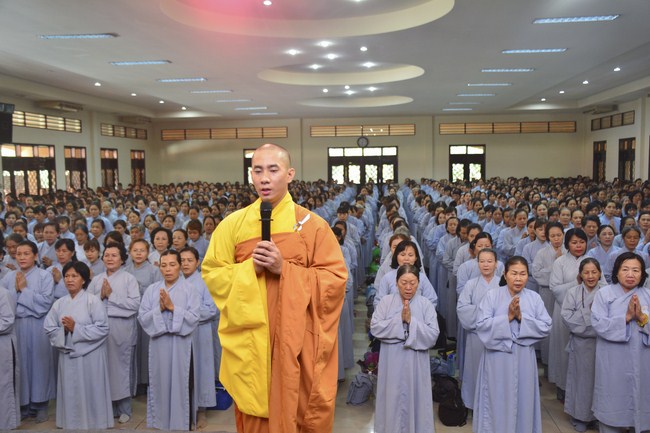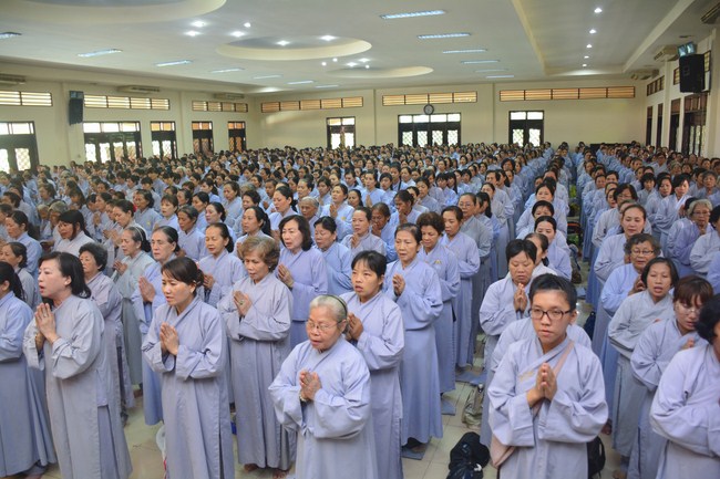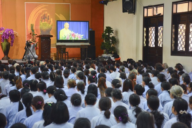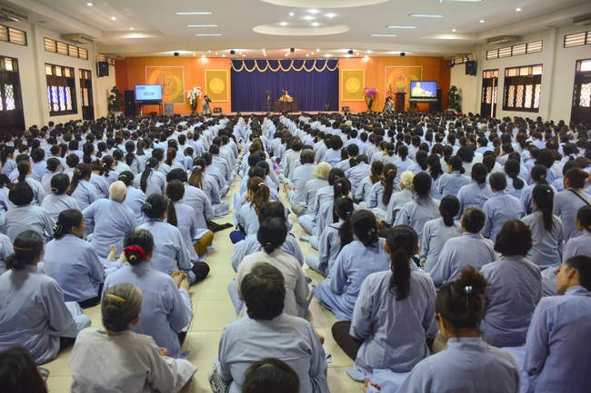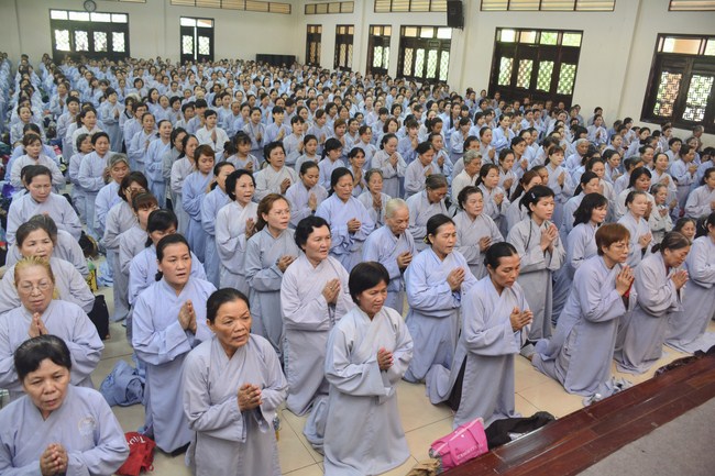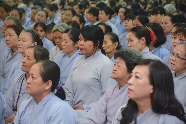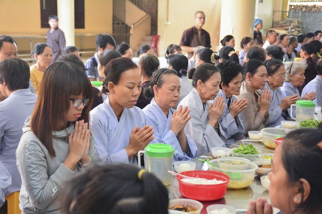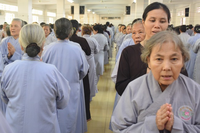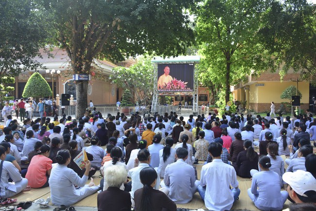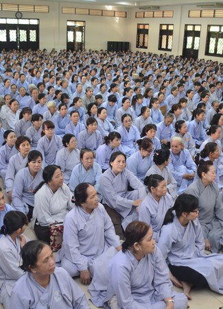 After having breakfast, Buddhists gathered to the lecture halls to listen to a dharma talk from Senior Venerable Thich Chan Tinh – abbot of Hoang Phap pagoda, head of organization board.