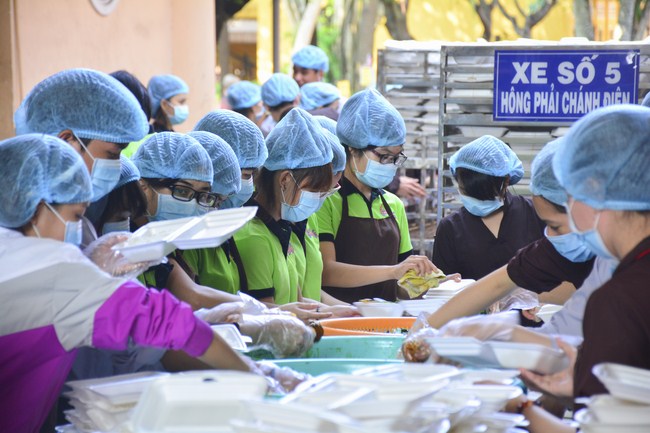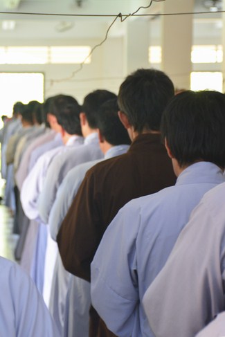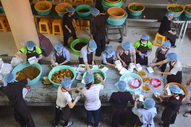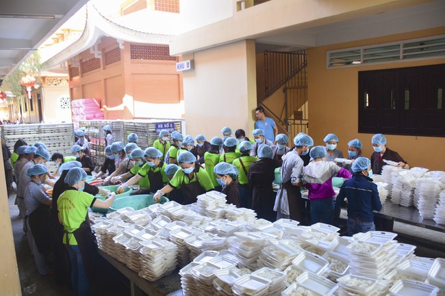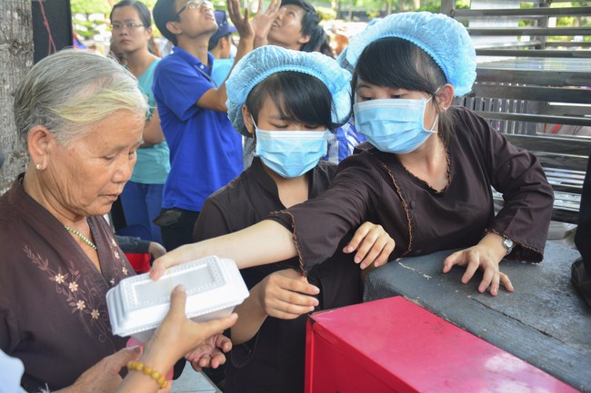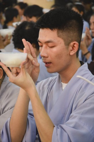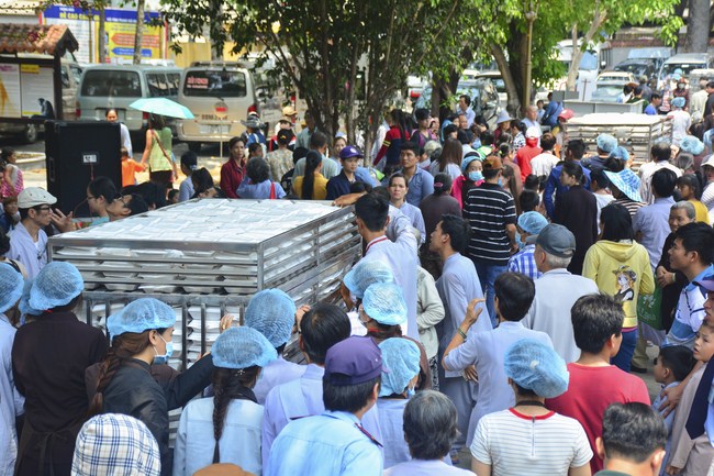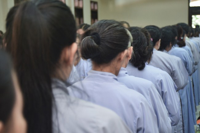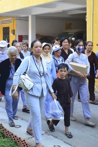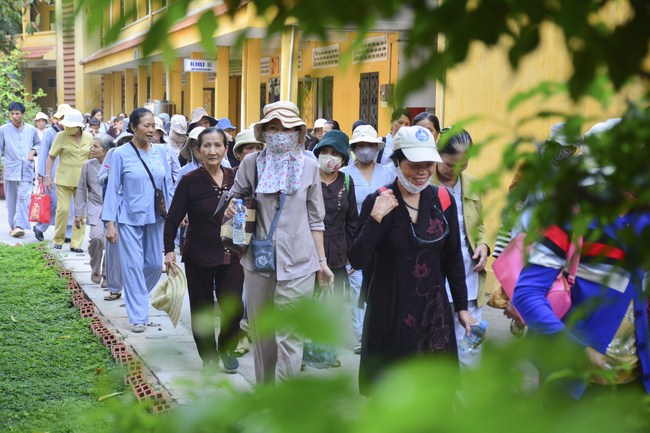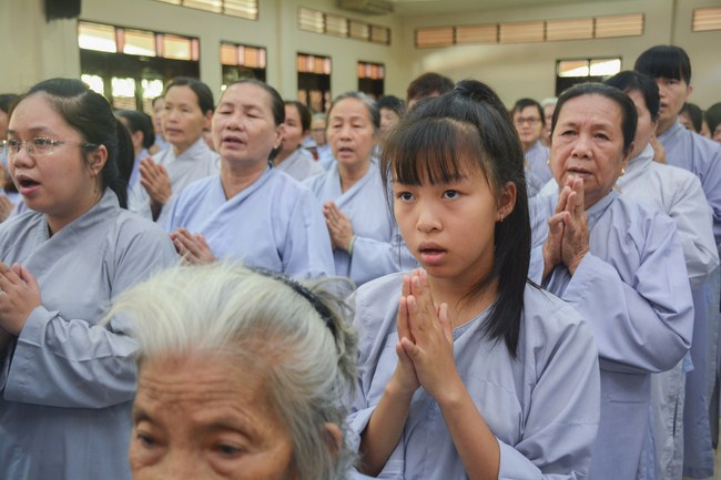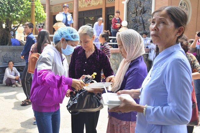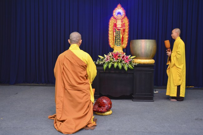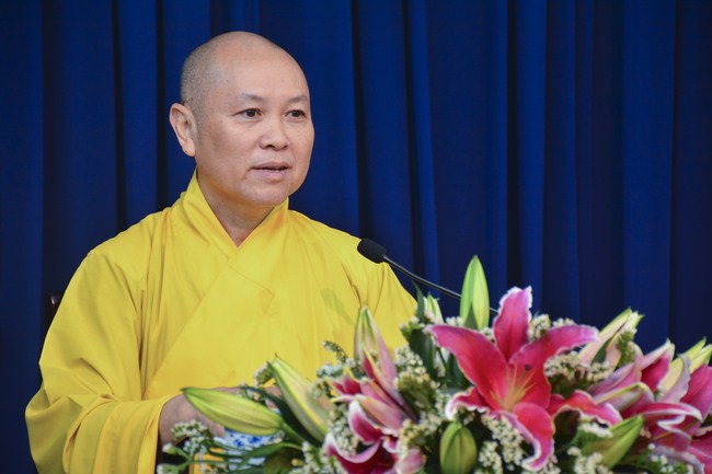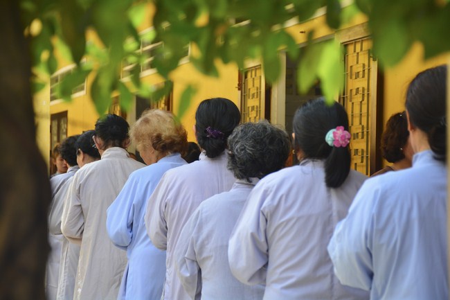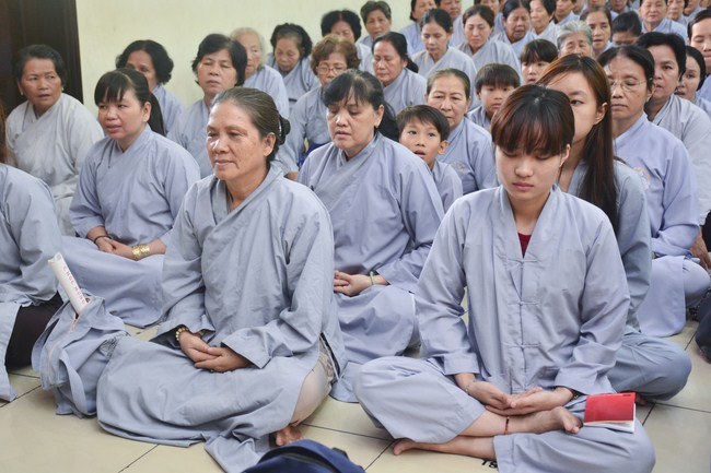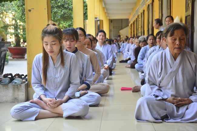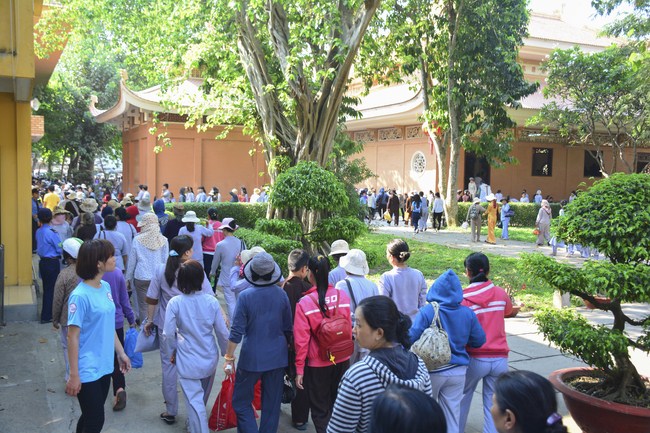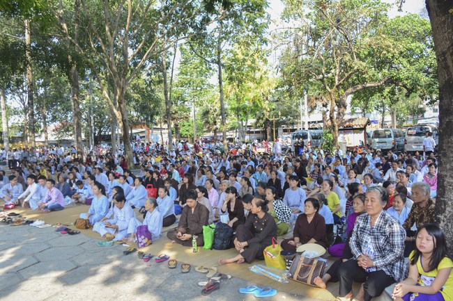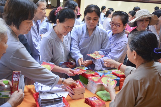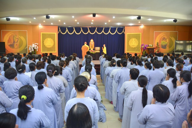 After having breakfast, Buddhists gathered to the lecture halls to listen to a dharma talk from Senior Venerable Thich Chan Tinh – abbot of Hoang Phap pagoda, head of organization board.