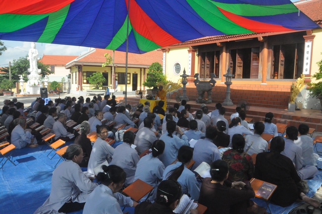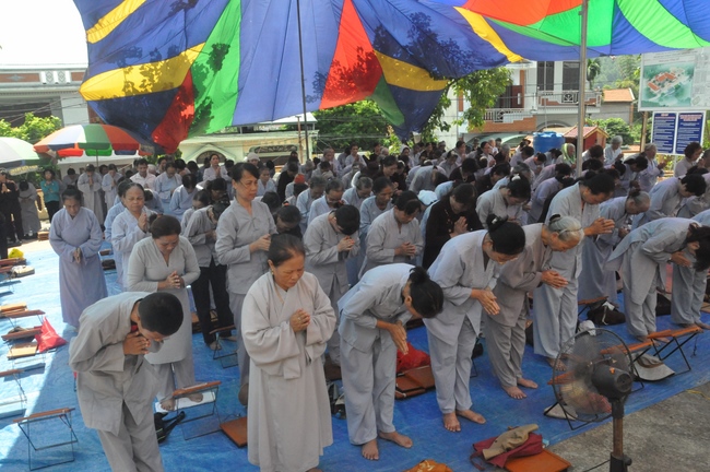 Ending the preach, the mass began the repentant course instructed by the Junior Ven. Thich Tam Tinh, Committee of the Director Board of Vietnam Buddhist Association in Province Quang Ninh, Abbot of Tieu Dao Pagoda.
