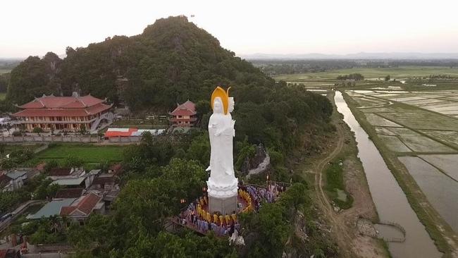 In the morning of June 4th, 2017 (May 10th, Rooster Year), accepting the invitation of Junior Venerable Thich Tam Thanh, Senior Venerable Thich Chan and the monks from Hoang Phap Pagoda visited Co Am Pagoda, Dien Minh Commune, Dien Chau District, Nghe An Province, in order to attend the inauguration of the “Precious Hall of Great Hero”, setting great statue of Guan Yin (Avalokitesvara) at Co Am Pagoda.
