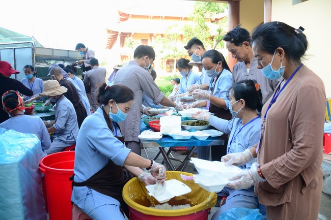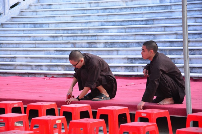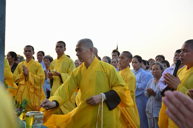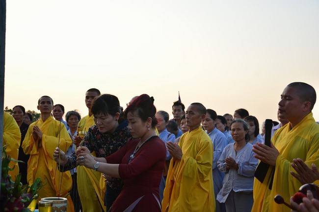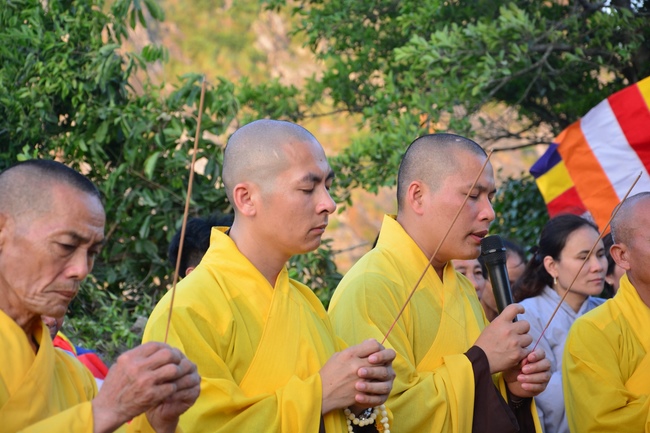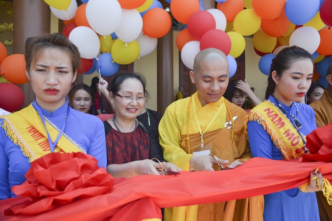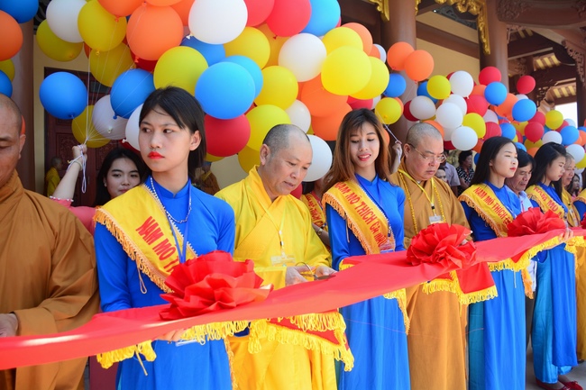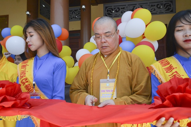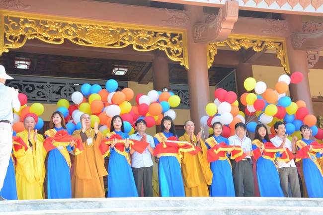 At the end of the ceremony, the abbot was, on behalf of the Organizers, expressed his gratitude to the monks and nuns.Later, the pious monks and distinguished guests held the ceremony of cutting ribbons in the inauguration, released balloons for peaceful praying and ritual incense offering at “Three Germ Tower.â€