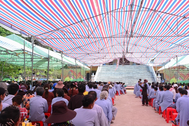 After declaring the reasons for the program, Venerable Thich Tam Thanh, the abbot of Co Am Temple, the head of BTC gave the opening speech. After that, Venerable Thich Tam Vuong, on behalf of the organizers, approved the report on the first phase of process of building at Co Am Pagoda. Accordingly, in the 1stphase, the total area for construction planning is 1.5 ha, with a total its cost of nearly 50 billion VN dong.